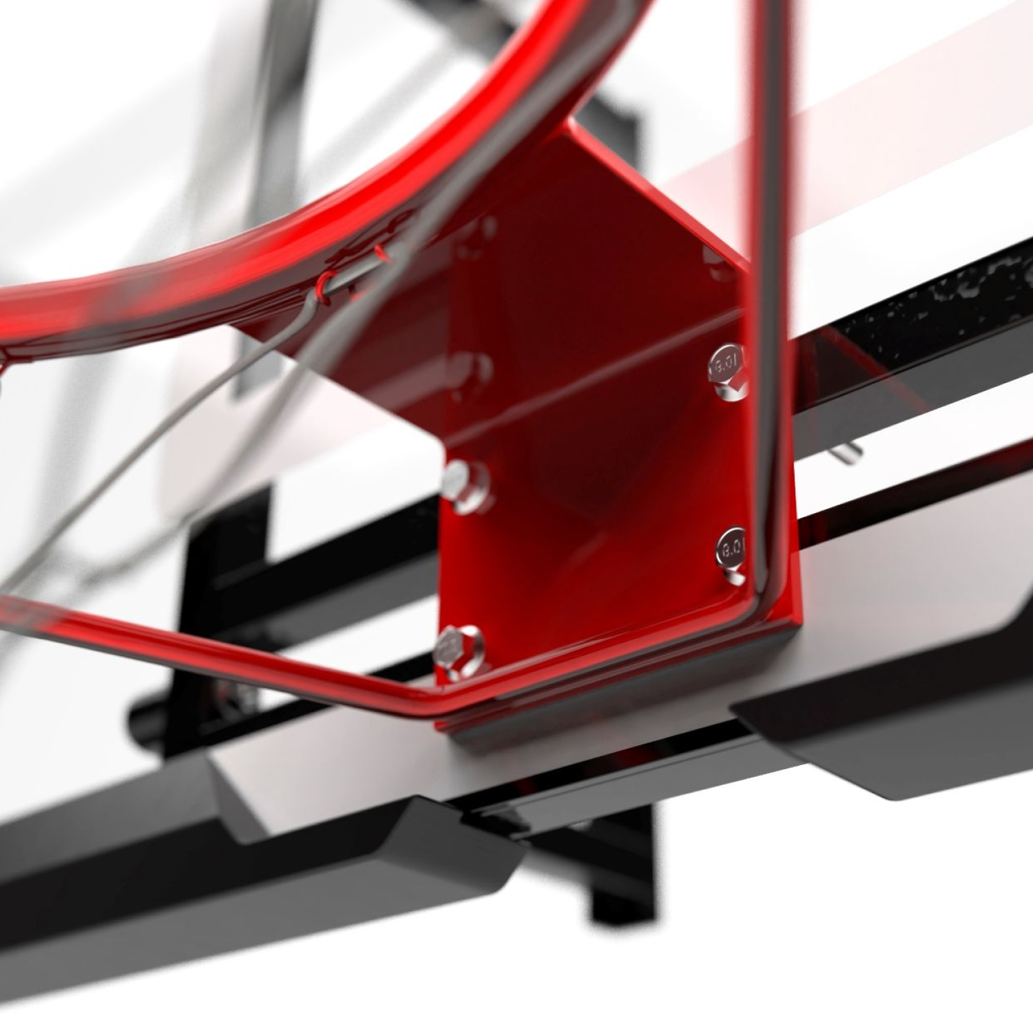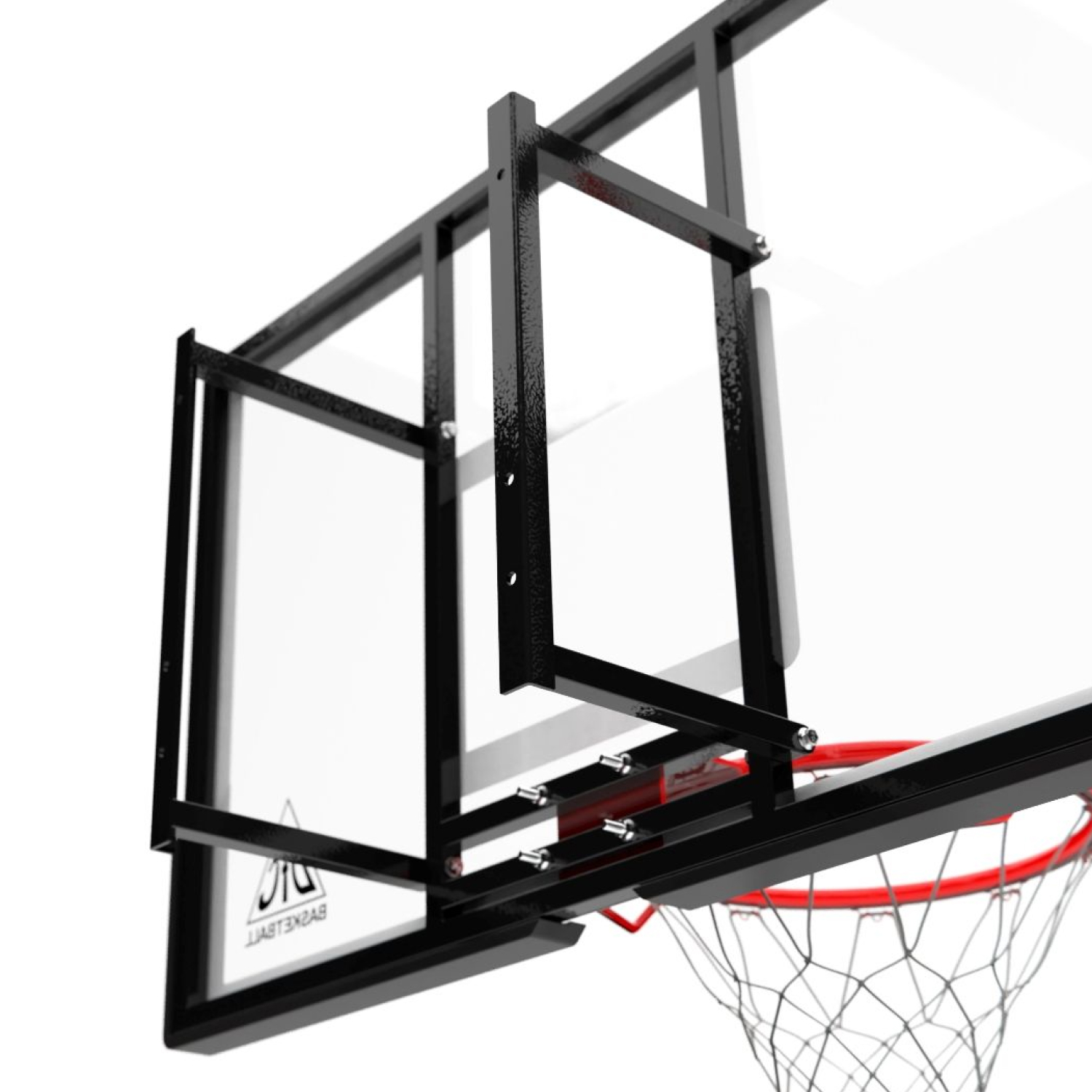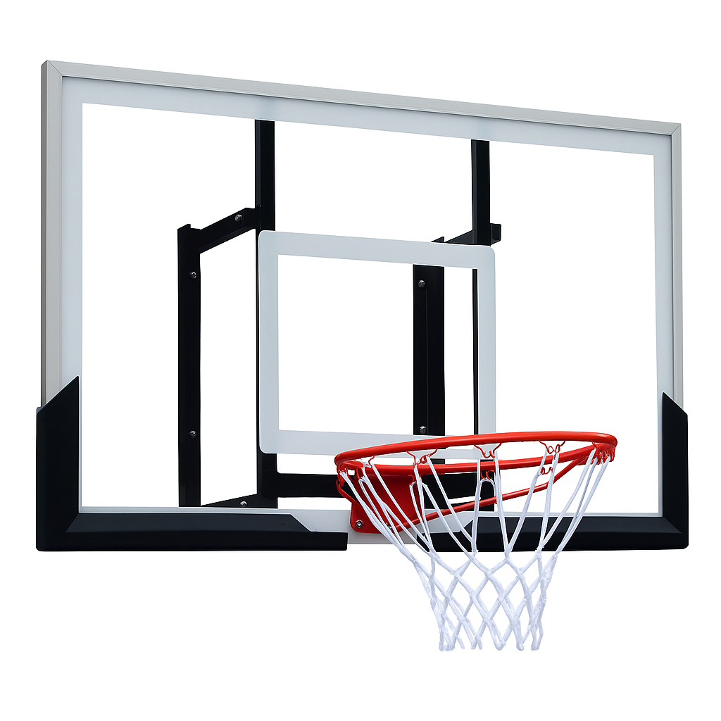 Щит изготовлен из прочного поликарбоната, который отличается высокой устойчивостью к ударам и погодным условиям. Он не мутнеет, не выцветает и сохраняет аккуратный внешний вид даже при активной эксплуатации. Толщина конструкции 3 мм, что обеспечивает надежность и долговечность, а качественная сборка гарантирует устойчивость при бросках и отскоках мяча.