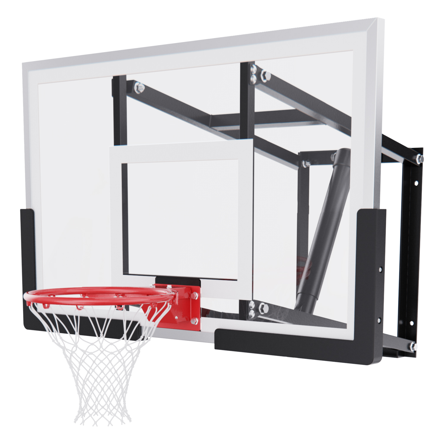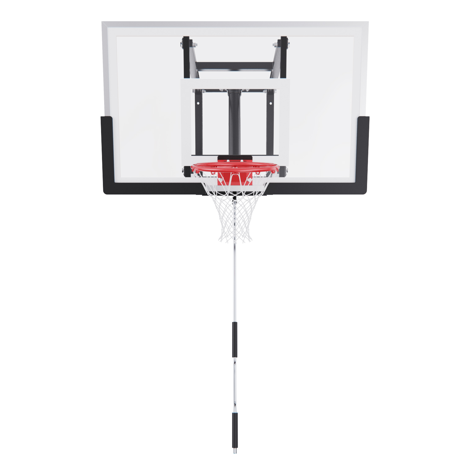 Щит изготовлен из прочного поликарбоната толщиной 2 мм — материала, обеспечивающего хороший отскок мяча и устойчивость к ударам. Его размеры — 110 x 70 см, что делает его максимально приближенным к профессиональному оборудованию. Регулируемый вынос щита (51–55,5 см) повышает безопасность и удобство во время игры. Дополнительную безопасность обеспечивает защита Poly Pade, установленная по нижнему краю щита.