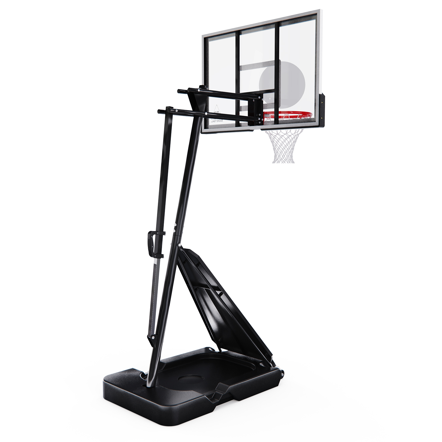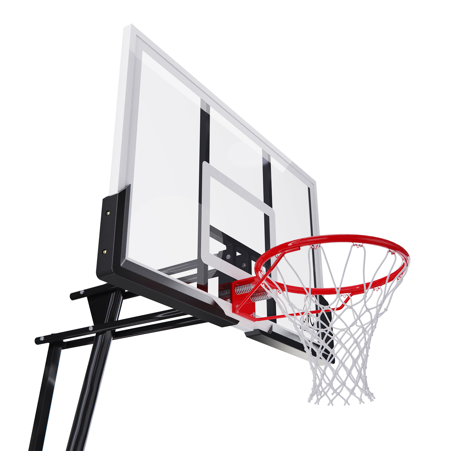 Диаметр кольца составляет 16 мм, а его размер 45 см. Щит размером 108 x 69 см (43 дюйма) изготовлен из поликарбоната. Регулировка по высоте возможна в диапазоне от 150 до 305 см (по кольцу) с помощью ручки.