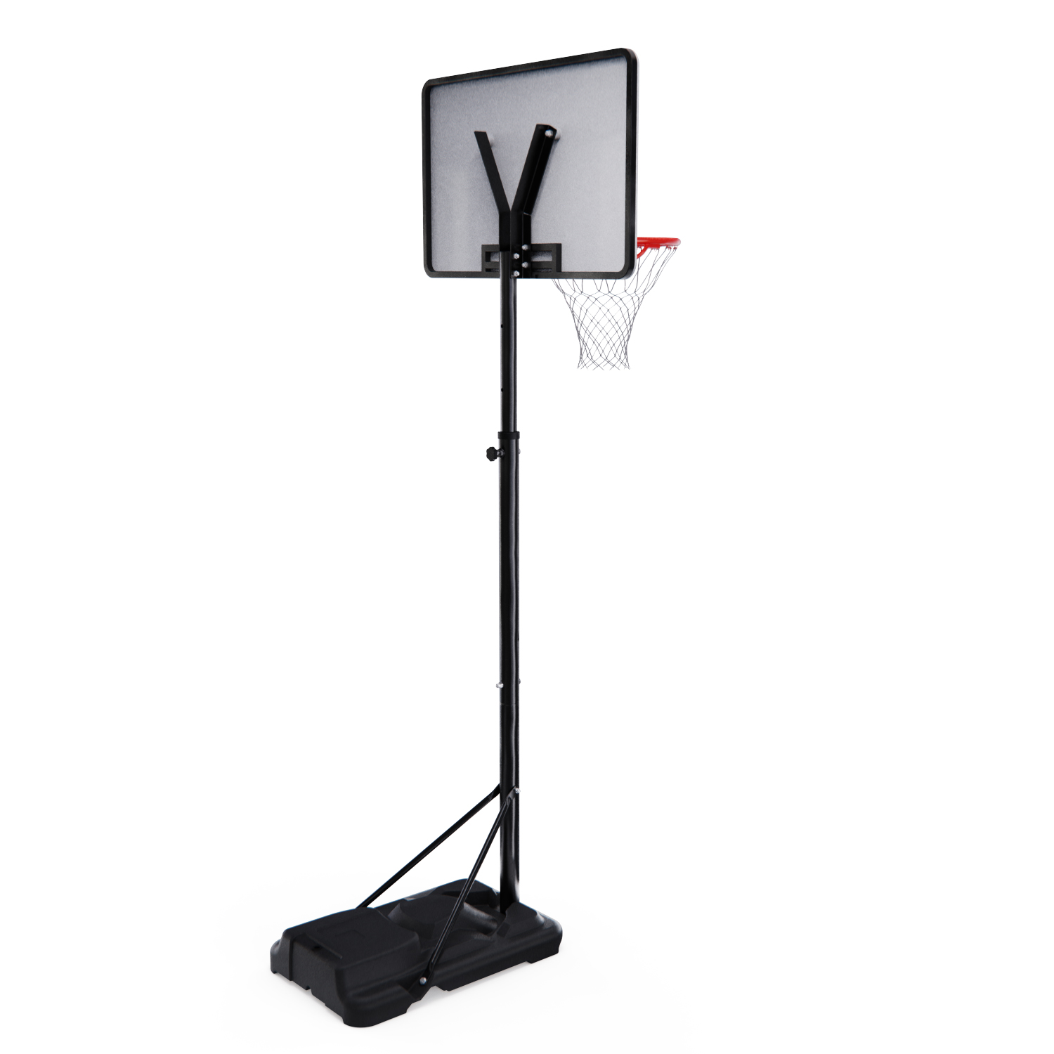 В основание стойки необходимо залить воду или засыпать песок. Для перемещения стойки по площадке в основании предусмотрены ролики.