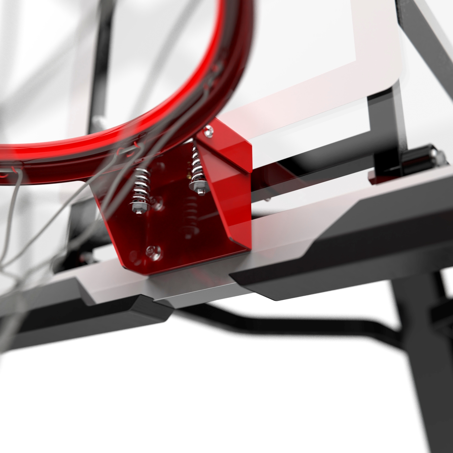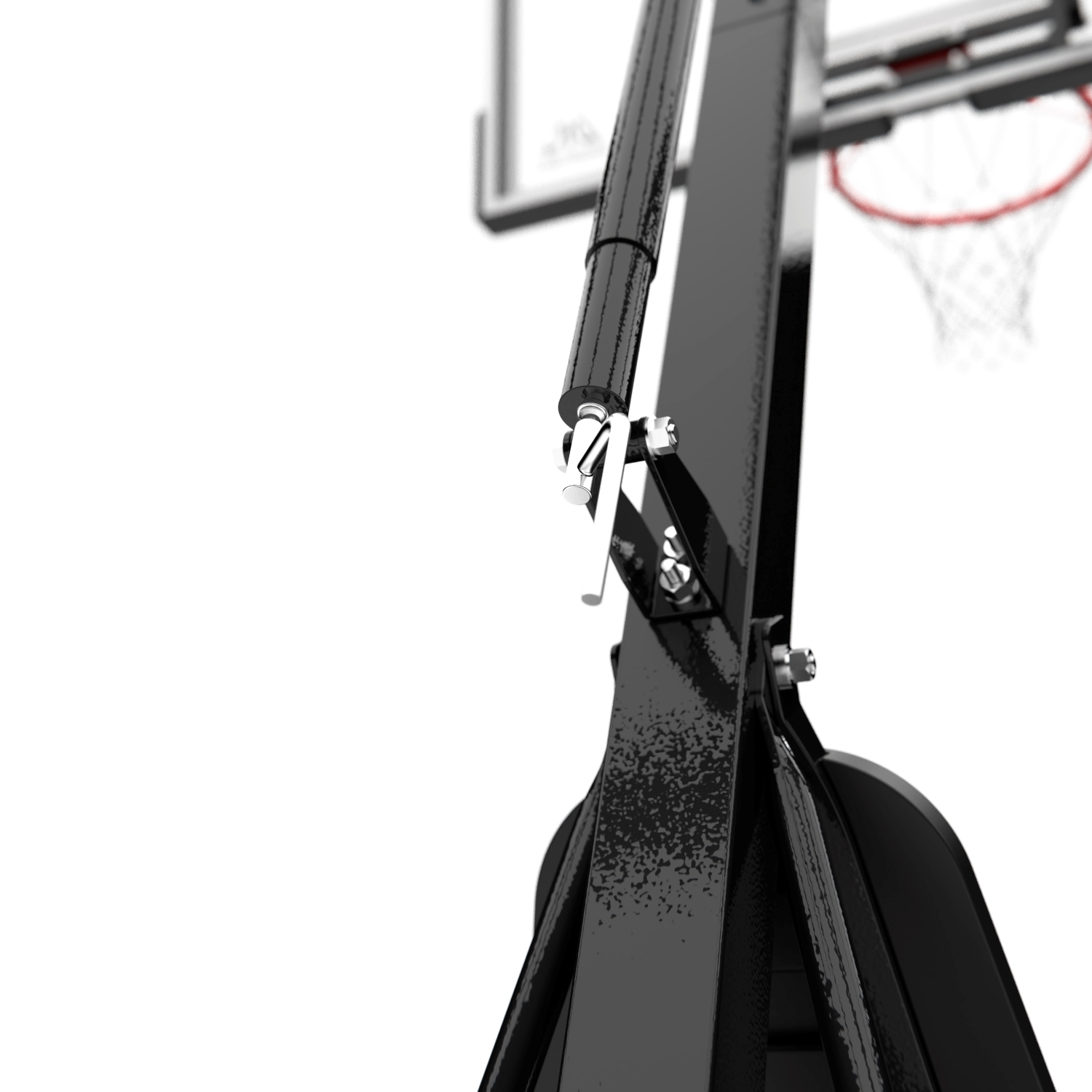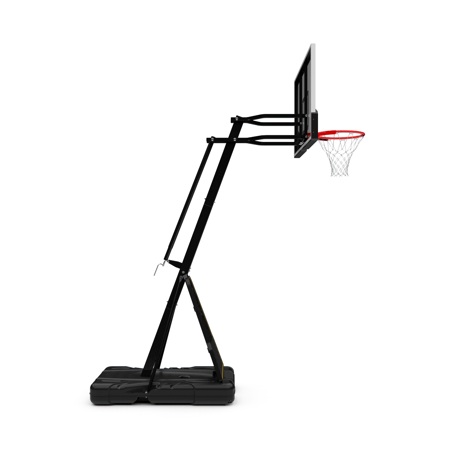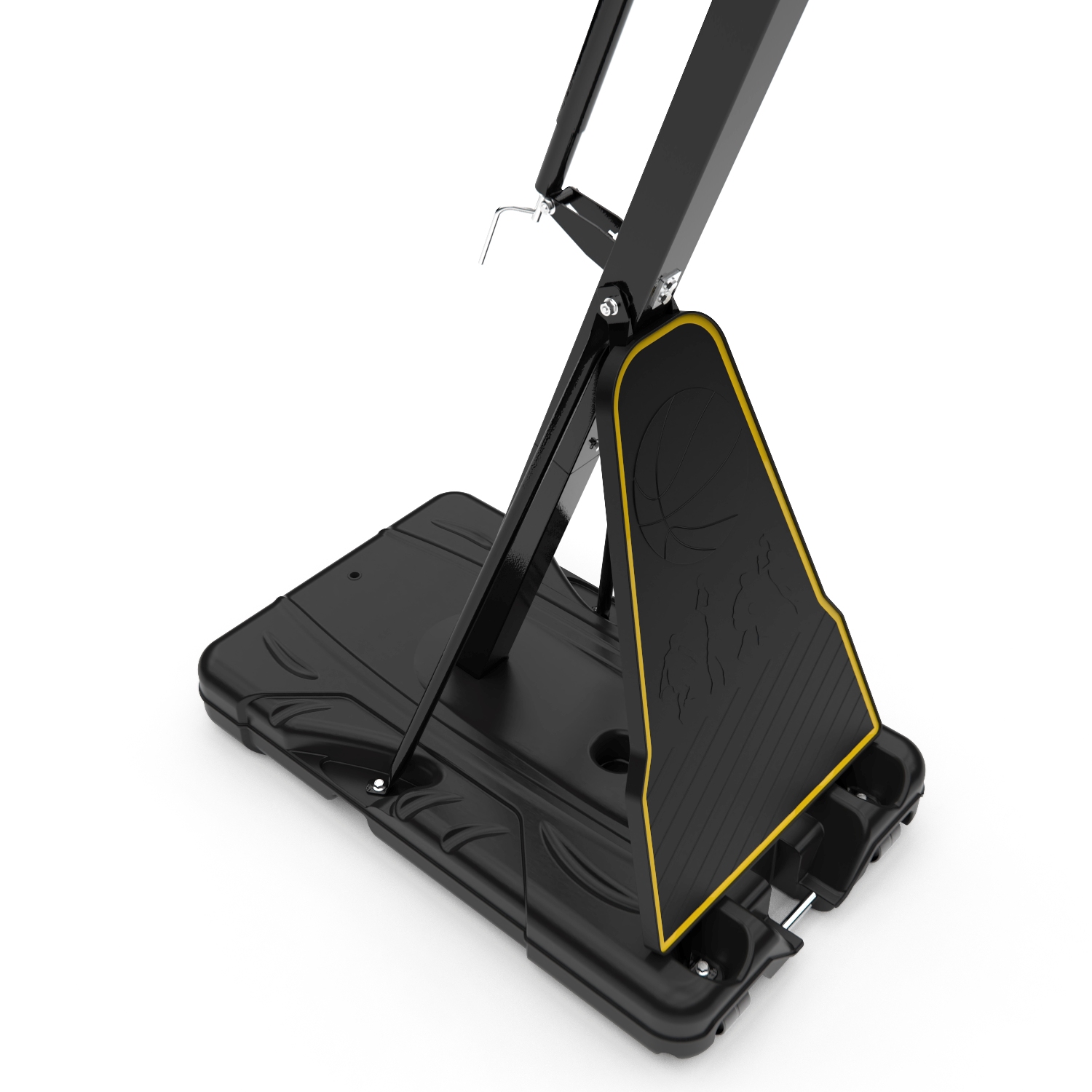 Портативные баскетбольные стойки серии DFC REACTIVE совмещают в себе мобильность и обеспечивают отскок мяча, как на профессиональной площадке. Благодаря усиленной конструкции удалось добиться увеличенного вылета щита, при сохранении компактности размещения. Он регулируется в диапазоне от 230 до 305 см, имеет защитное покрытие Poly Pade в нижней части. В основание стойки (объем 114,7 л) необходимо залить воду или засыпать песок в качестве утяжелителя.