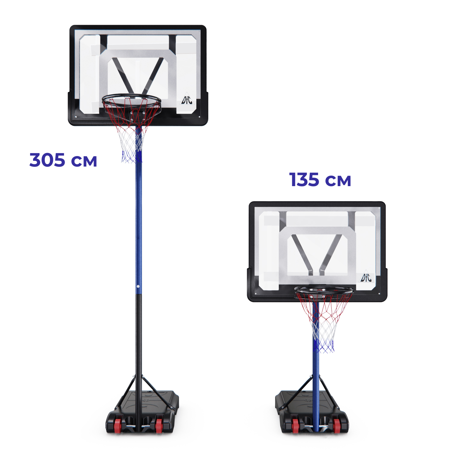 Мобильная баскетбольная стойка DFC K452 — отличный выбор для любителей баскетбола. Она имеет телескопическую регулировку высоты в диапазоне от 135 до 305 см, что позволяет использовать её как детям, так и взрослым.