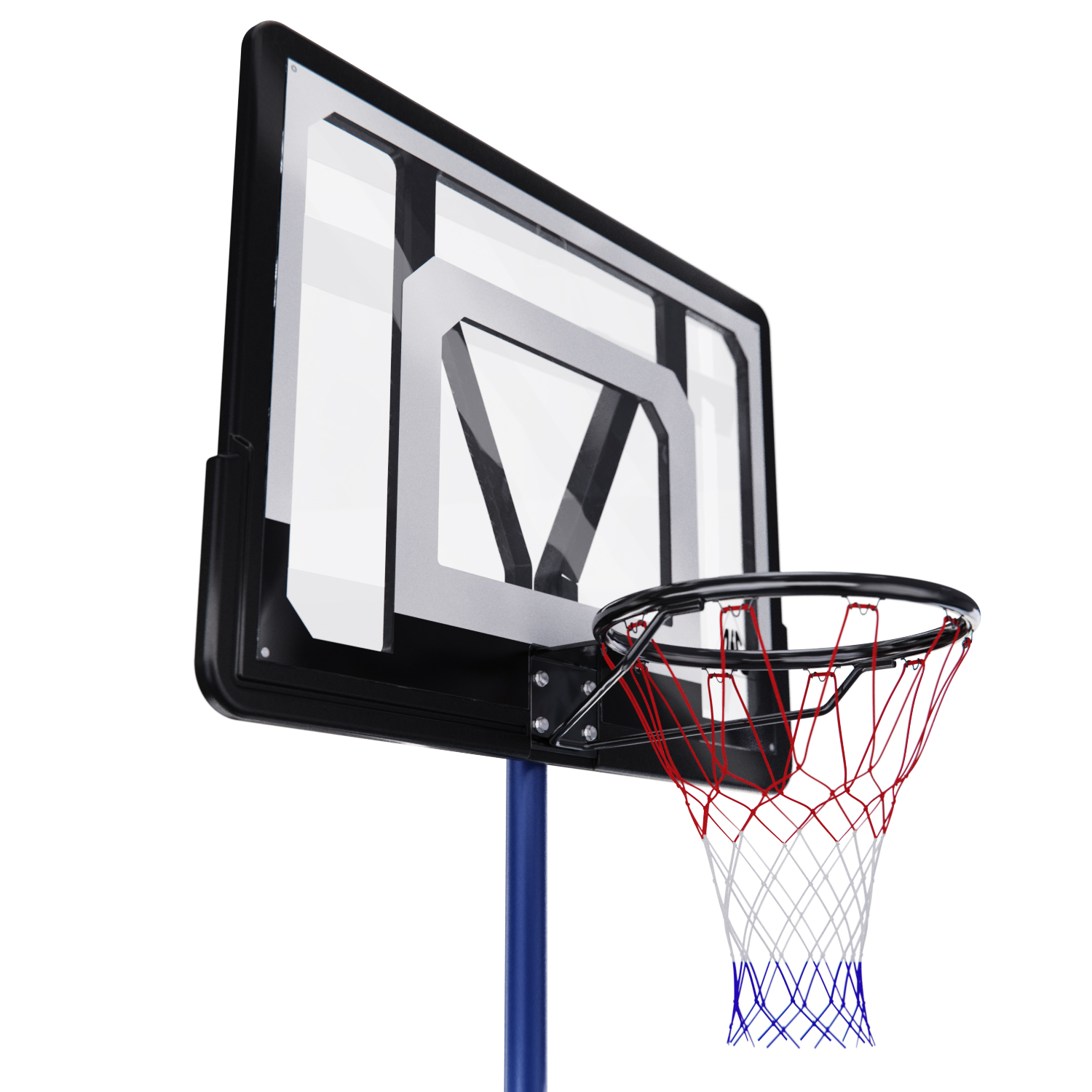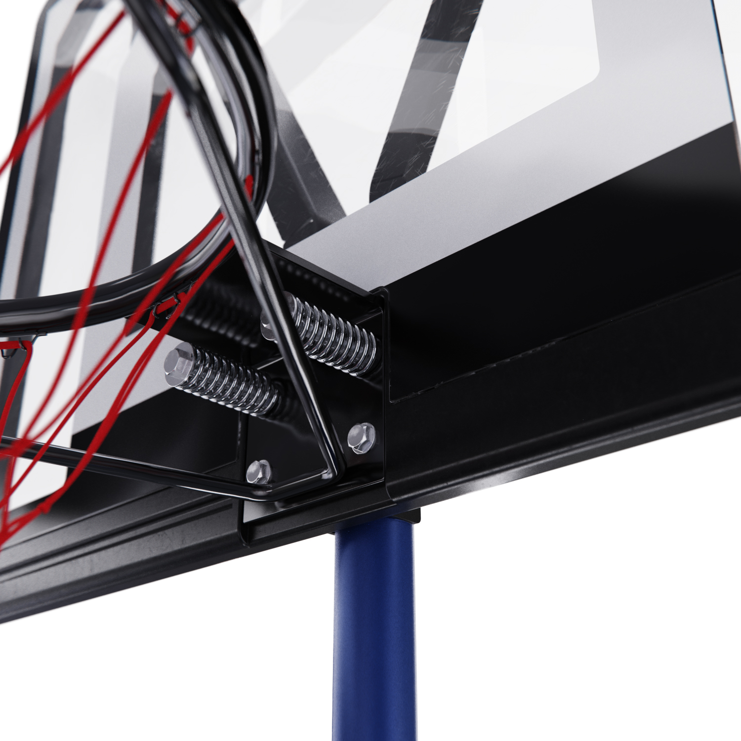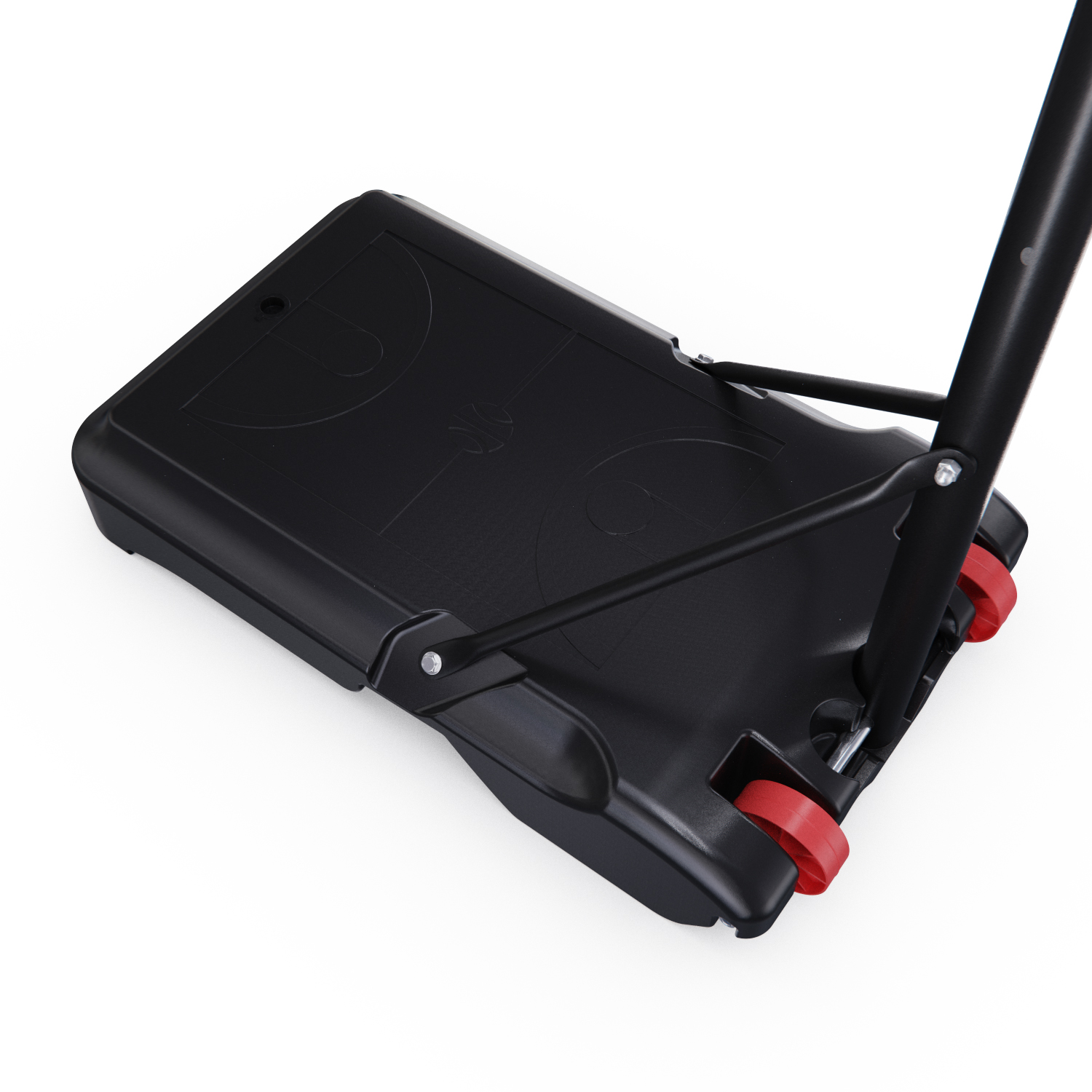 Размер щита составляет 110 x 72 см, а размер кольца — 45 см. Основание размером 90 x 60 x 15 см имеет объём 50 литров, что даёт возможность заполнить его водой или песком для устойчивости.