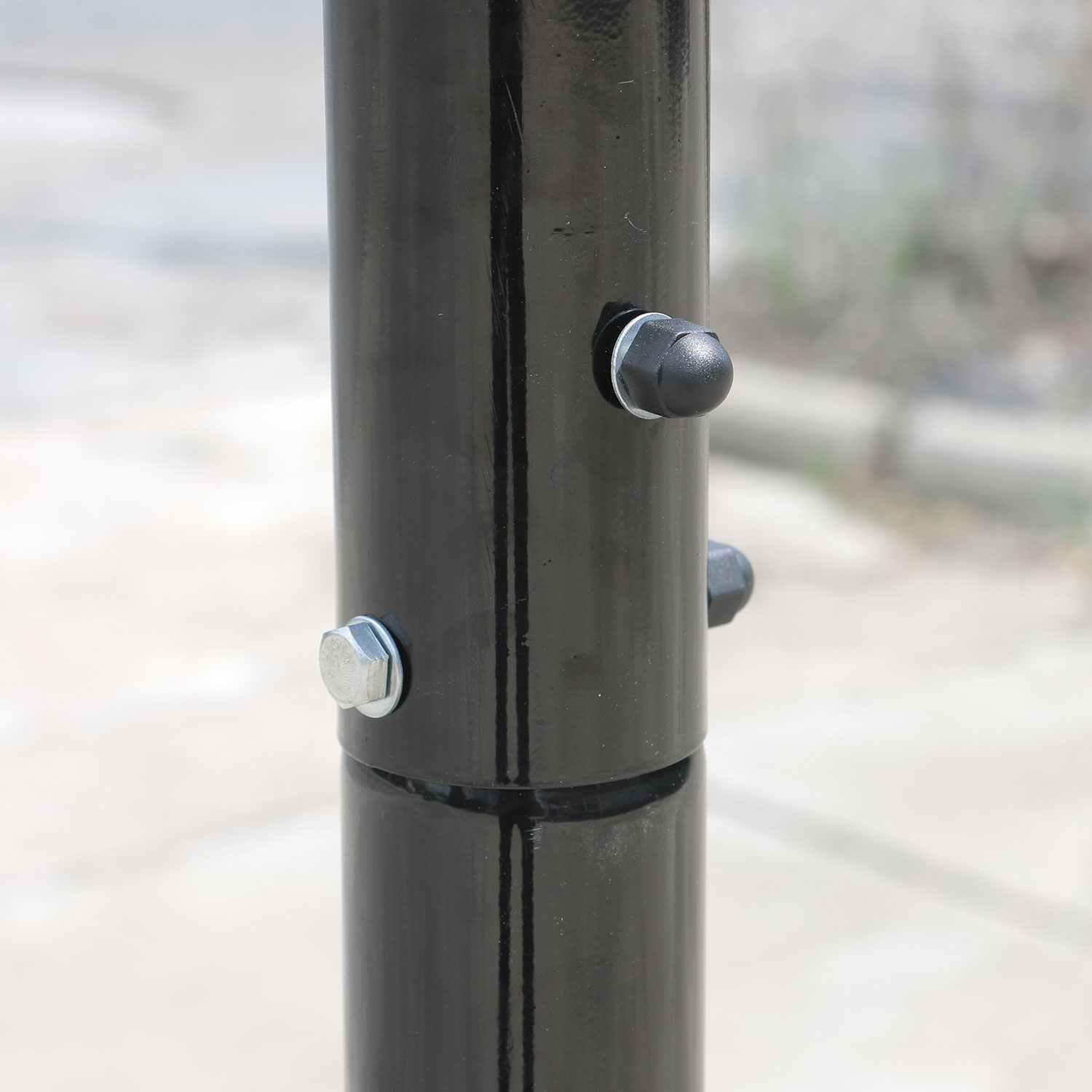 Телескопическая регулировка высоты от 165 до 210 см (по кольцу). Диаметр стойки (трубы, на которую крепятся щит и основание) - 4,5 см.