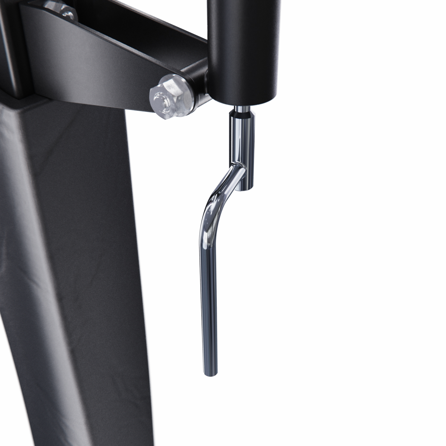 Бесступенчатая регулировка высоты с помощью рукоятки в пределах от 245 до 305 см.
