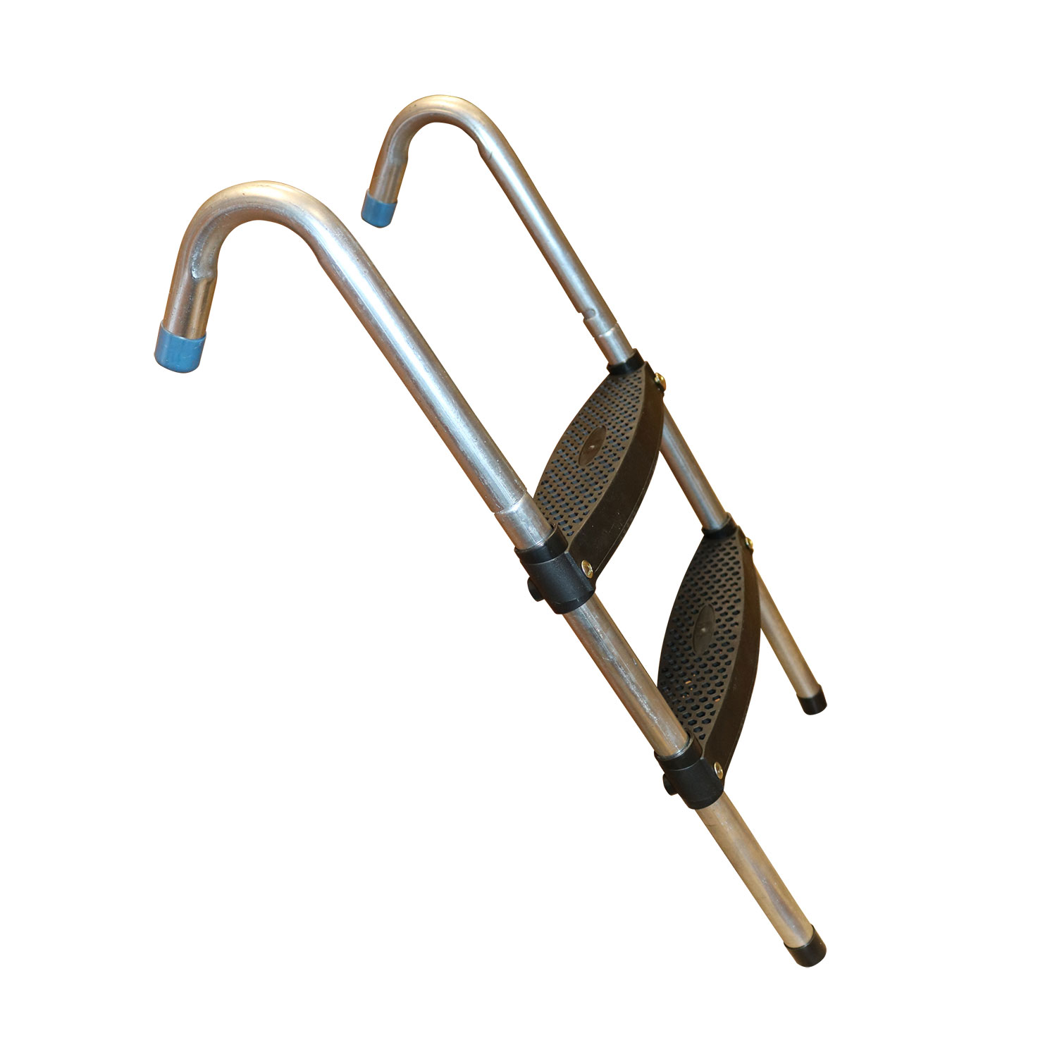 Ступени лестницы изготовлены из прочного пластика и имеют нескользящую поверхность. Цвет черный.