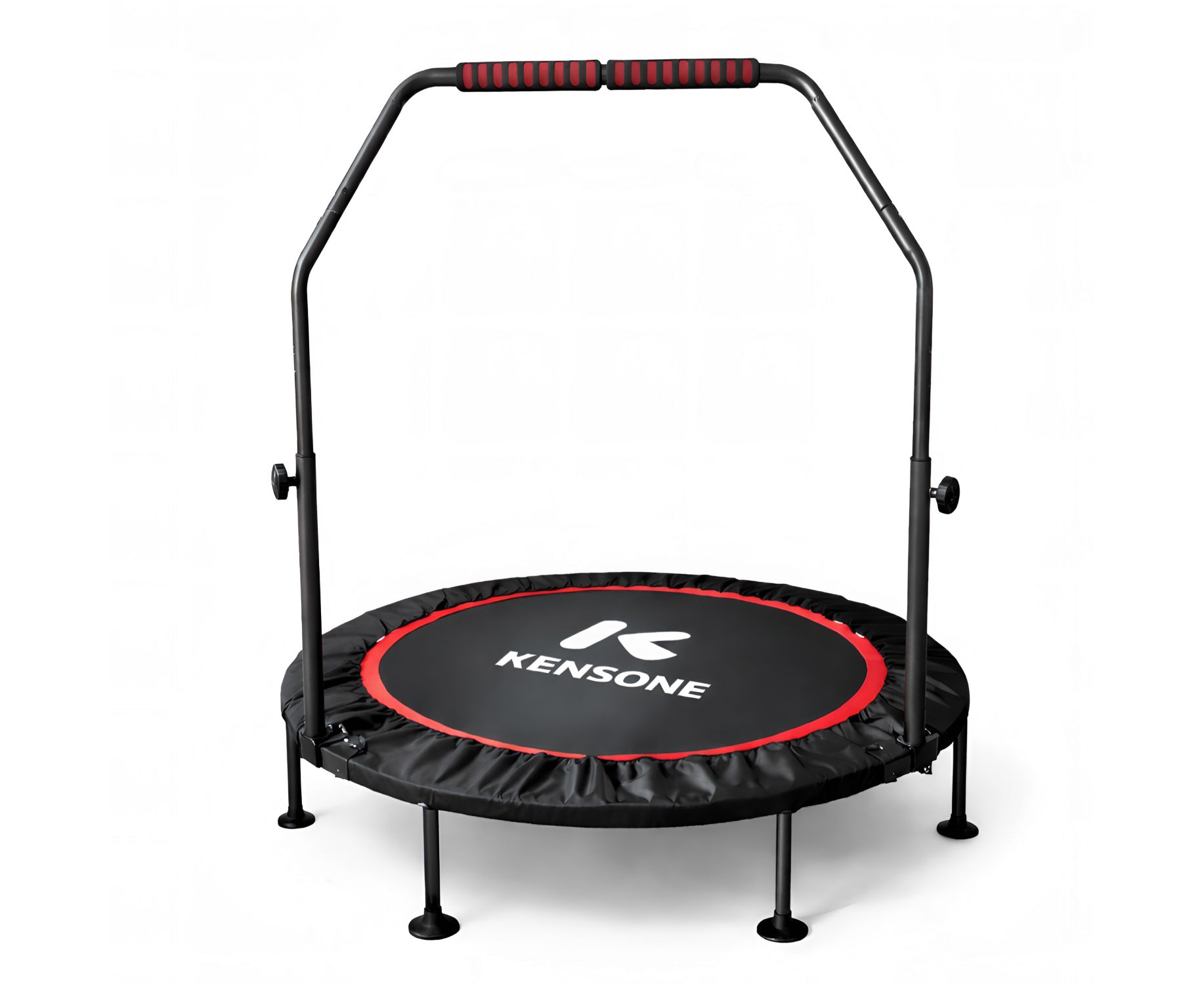 Батут оснащен регулируемым поручнем, который обеспечивает дополнительную поддержку и безопасность во время тренировок. Поручень регулируется по высоте на 5 уровней и может устанавливаться в диапазоне от 95 до 115 см, что позволяет легко настроить батут под рост пользователя и тип тренировки.