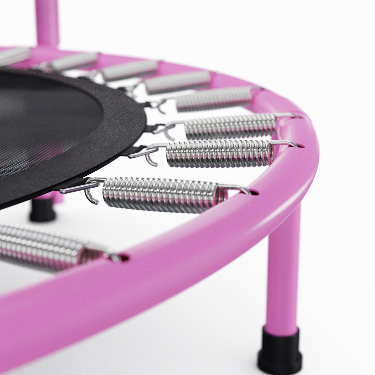 Основная рама сделана из цельной конструкции Ø25х1 мм, что гарантирует стабильность и долговечность изделия. Ножки батута выполнены в виде U-образных опор из стали Ø25х1,5 мм и оснащены защитными нескользящими накладками. Это обеспечивает устойчивость батута на любой поверхности.