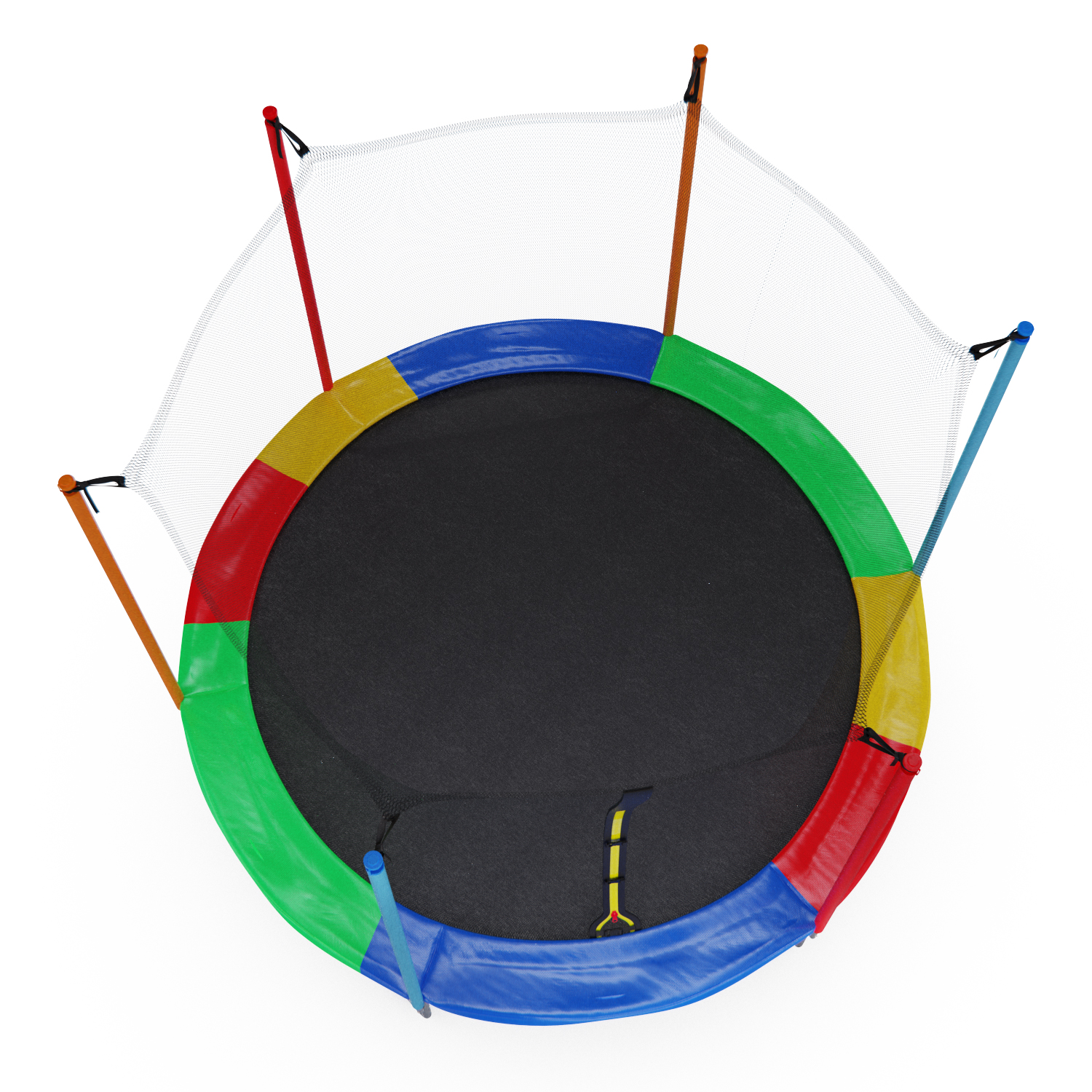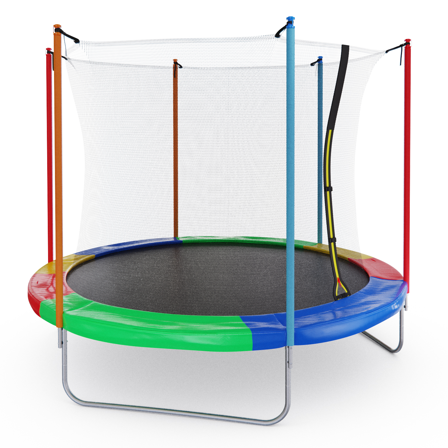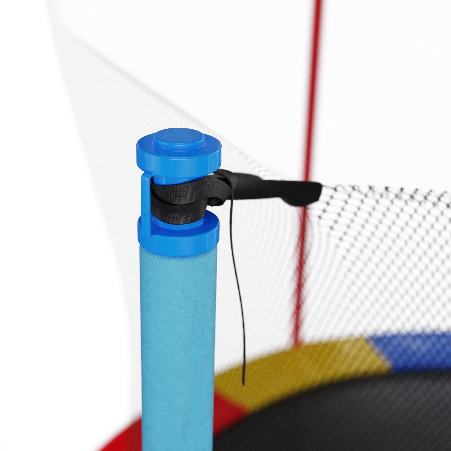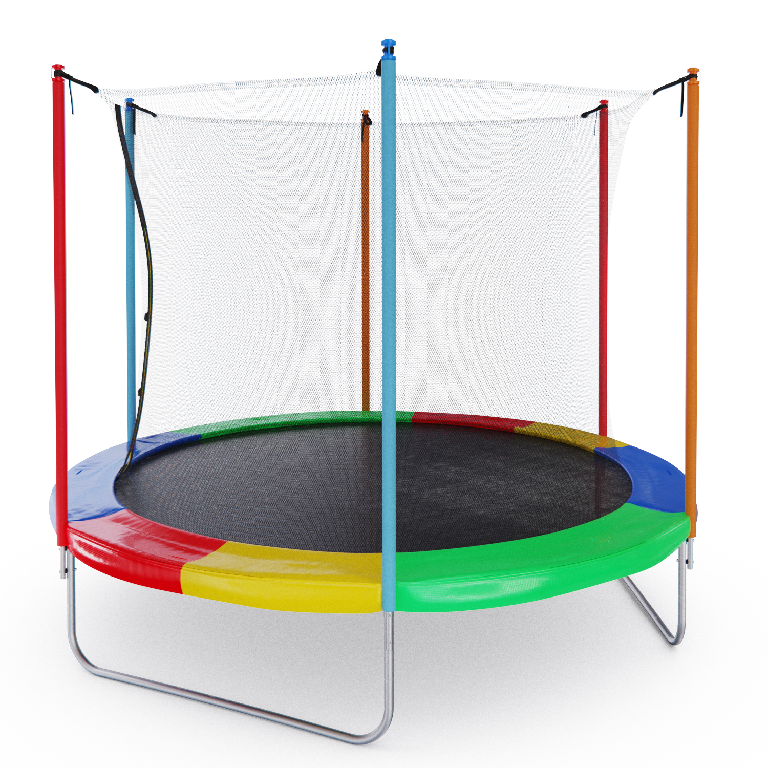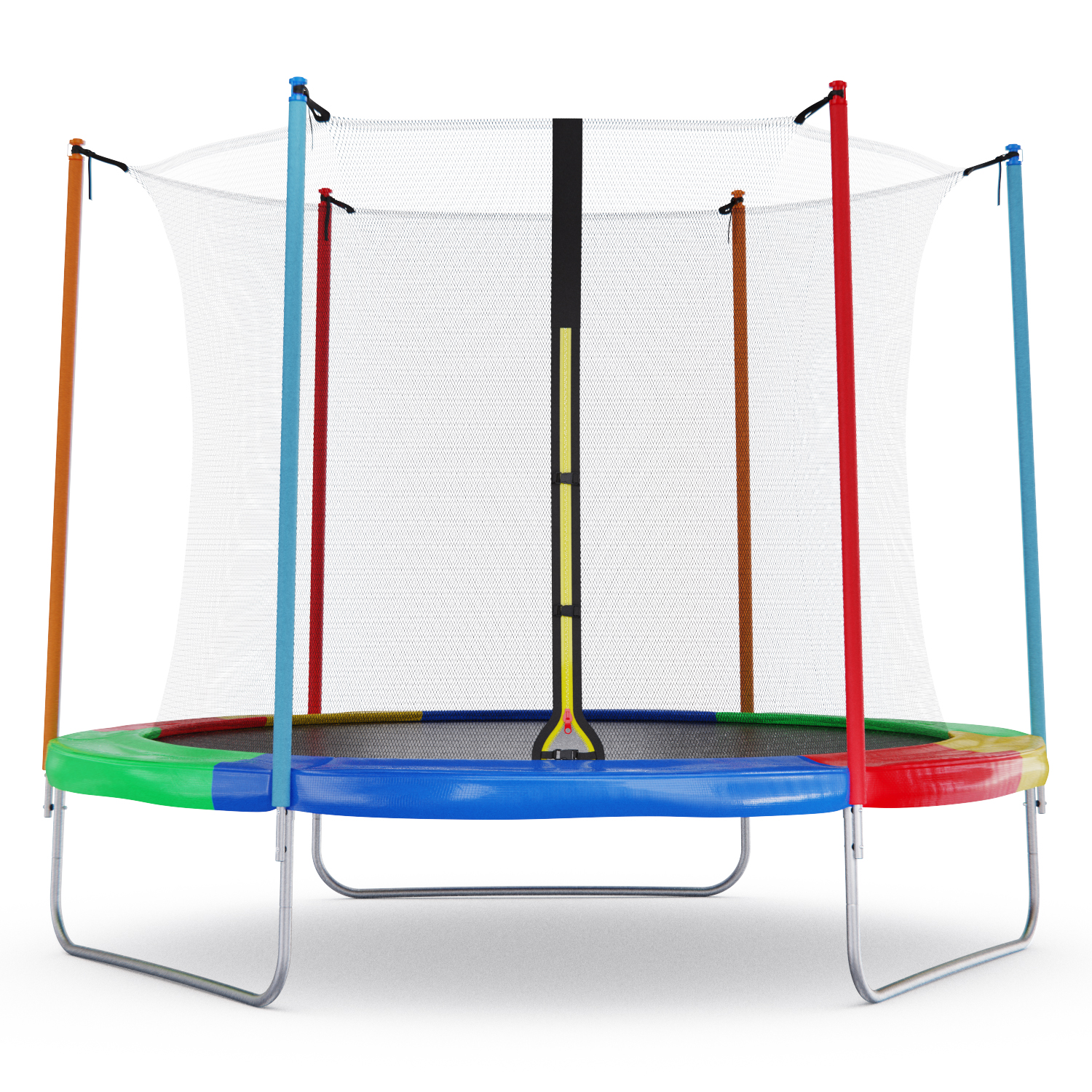 Стойки под защитную сетку изготовлены из стальных труб диаметром 25 миллиметров и толщиной 1 миллиметр. Высота защитной сетки составляет 170 сантиметров, что обеспечивает полную безопасность при прыжках на батуте.