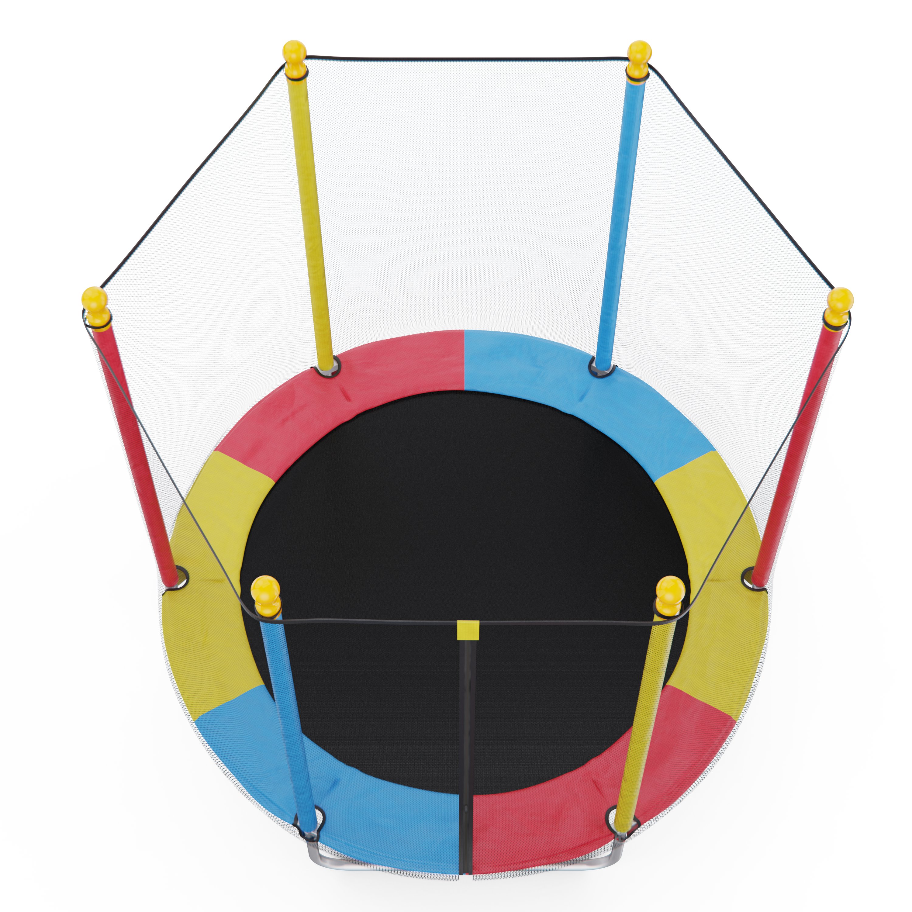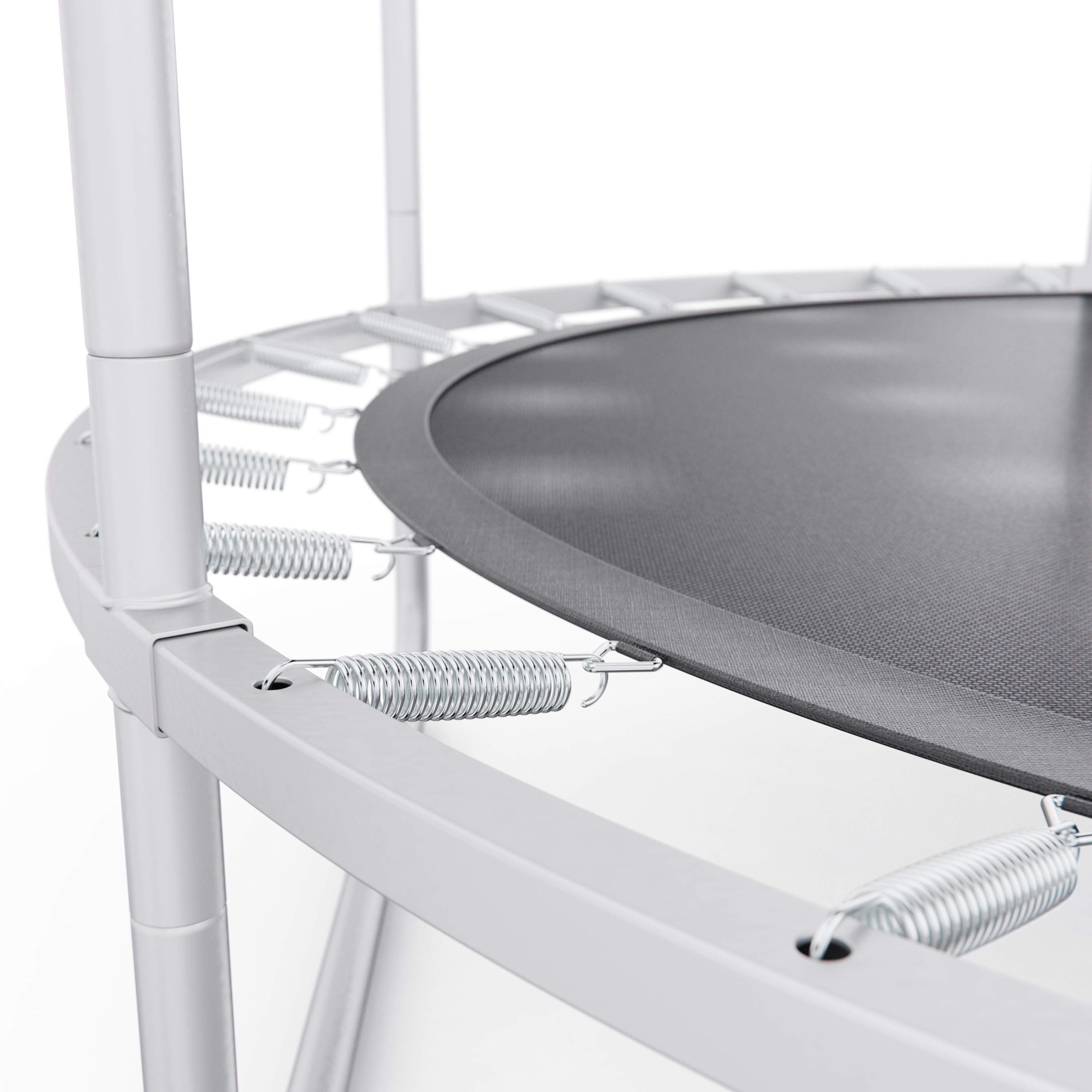 Диаметр батута составляет 137 см, что обеспечивает комфортное пространство для прыжков и упражнений. Прыжковое полотно выполнено из износостойкого полипропилена, устойчивого к регулярным нагрузкам. Упругость и равномерное распределение нагрузки обеспечивают 30 пружин, которые равномерно распределяют нагрузку и снижают ударное воздействие на суставы и связки.