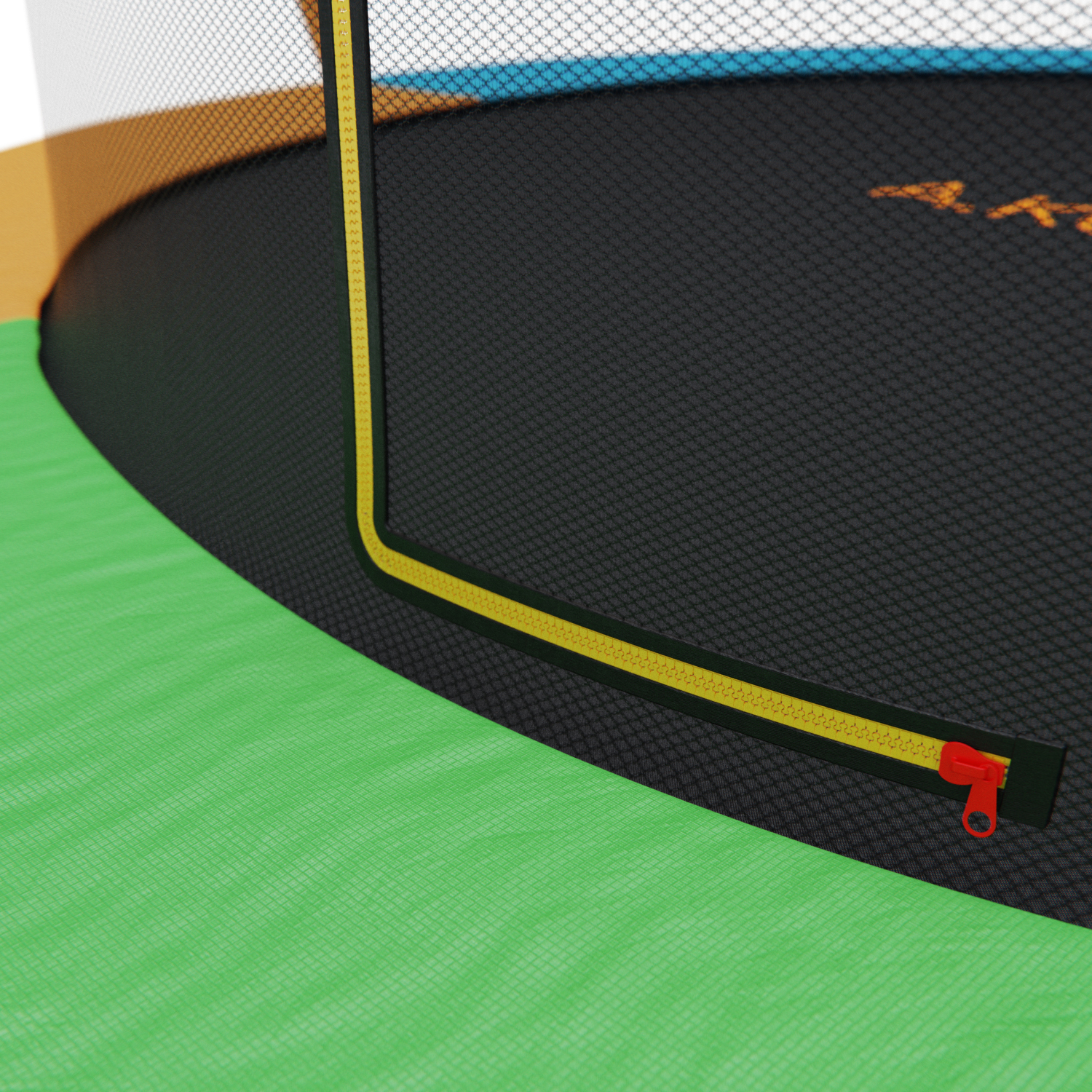 Внутренняя защитная сетка высотой 185 см обеспечивает безопасность пользователей, предотвращая возможные выпады за пределы батута. Она легко открывается и закрывается с помощью специального замка и надежно фиксируется на стойках, выполненных из высокопрочной стали.