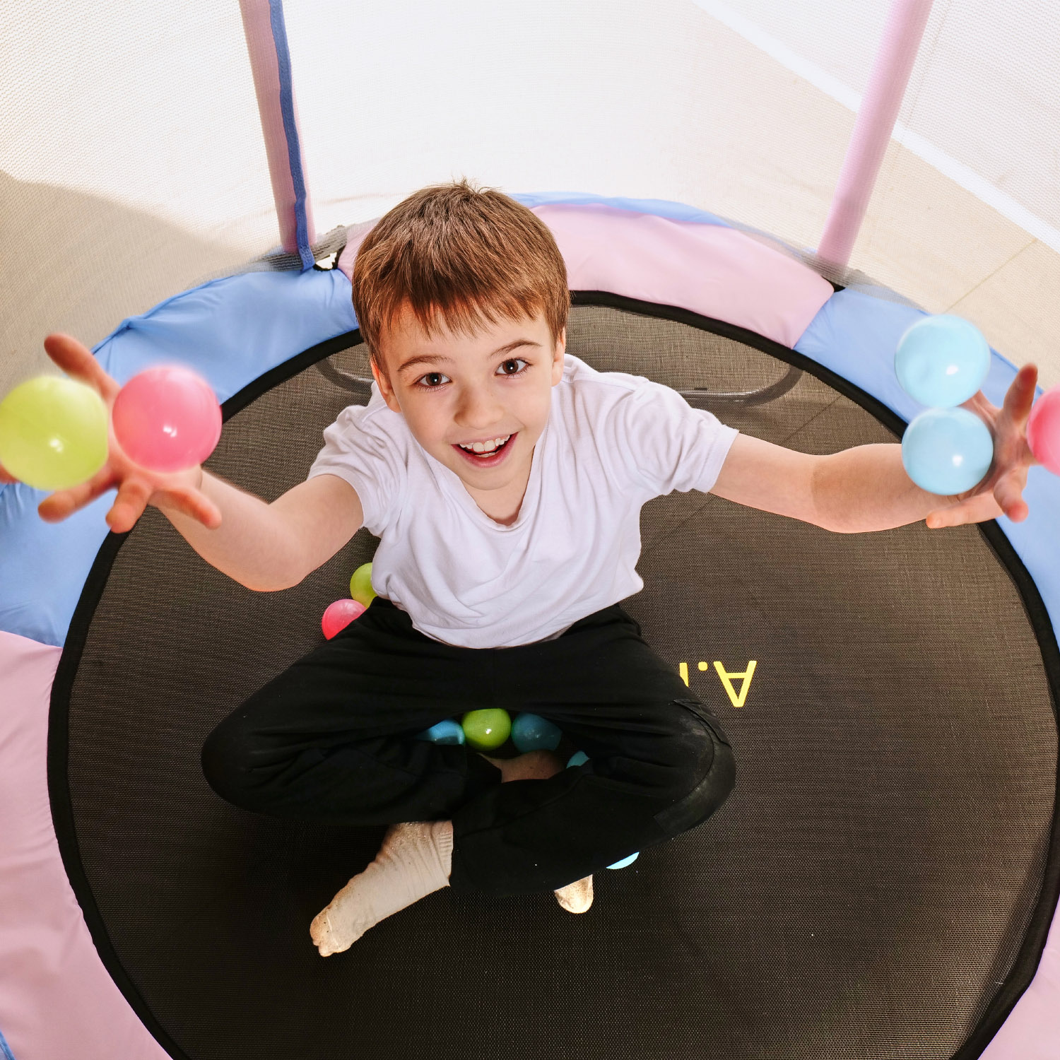 Поверхность батута изготовлена из высококачественного полипропилена, способного выдерживать ультрафиолетовые лучи, что гарантирует долговечность и надежность изделия.