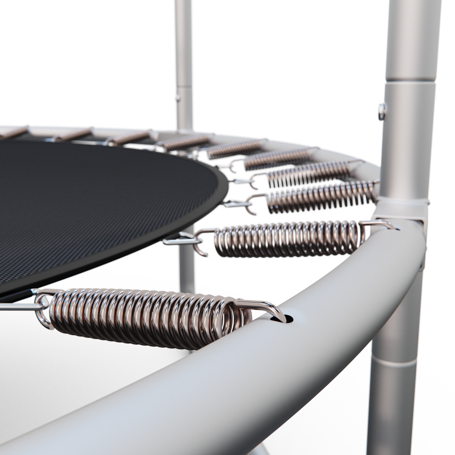 Основная рама батута состоит из 6-ти прочных стальных труб диаметром 25 мм и толщиной 1 мм, что обеспечивает устойчивость и безопасность при использовании. U-образные ножки и стойки для защитной сетки также выполнены из высокопрочной стальной трубы диаметром 25 мм с толщиной стенок 0,8 мм.