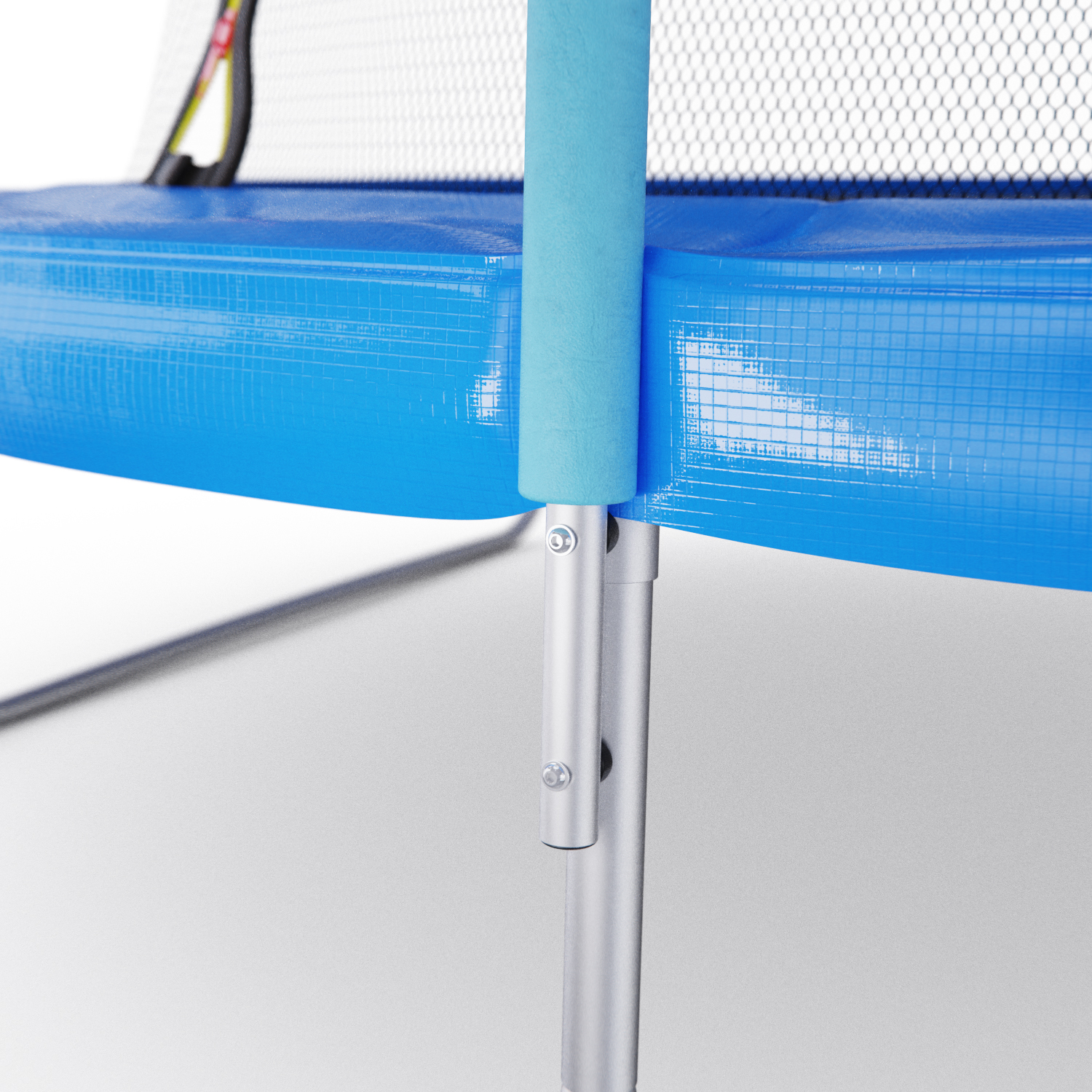 Стойки под защитную сетку изготовлены из стальных труб диаметром 25 миллиметров и толщиной 1 миллиметр. Высота защитной сетки составляет 170 сантиметров, что обеспечивает полную безопасность при прыжках на батуте