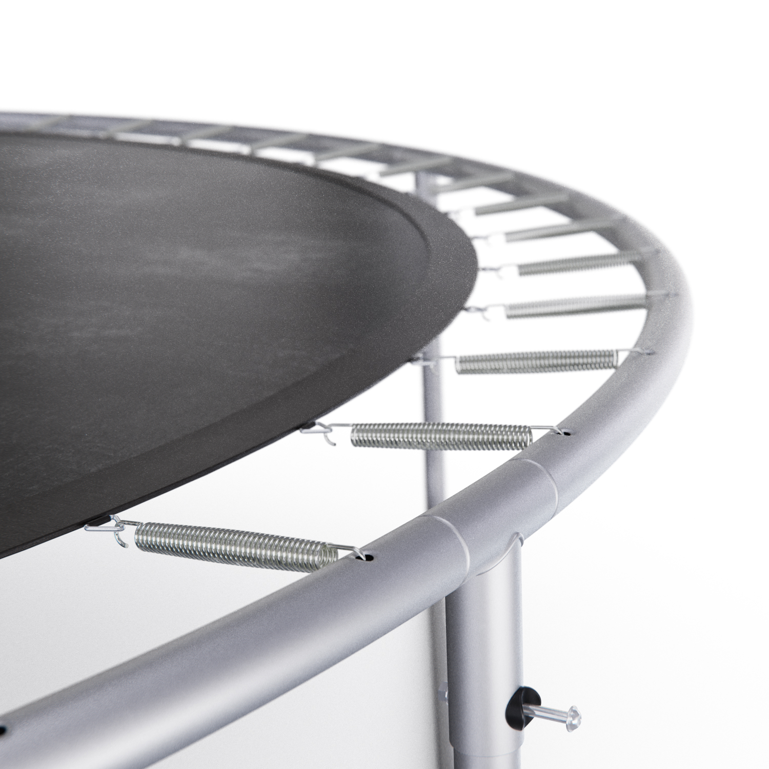 Диаметр батута составляет 10 футов (305 сантиметров), что позволяет комфортно разместиться на нем всей семье или компании друзей. Батут оснащен 54 пружинами, которые обеспечивают высокую прыгучесть и комфортное приземление. Пружины изготовлены из прочного и долговечного материала - нержавеющей стали.