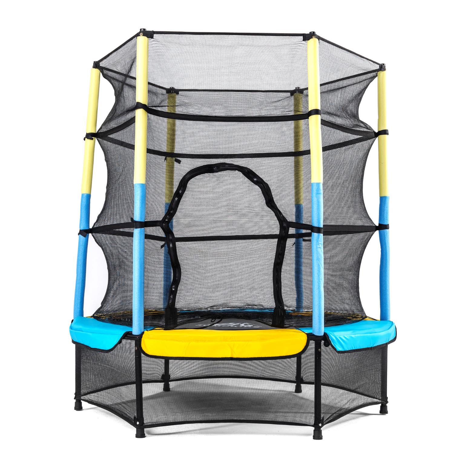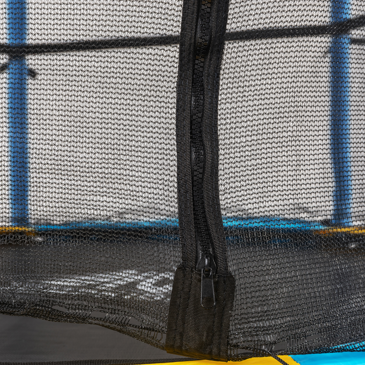 Вход в батут открывается и закрывается на молнию, бегунок размещен снаружи, чтобы ребенок не смог открыть самостоятельно.