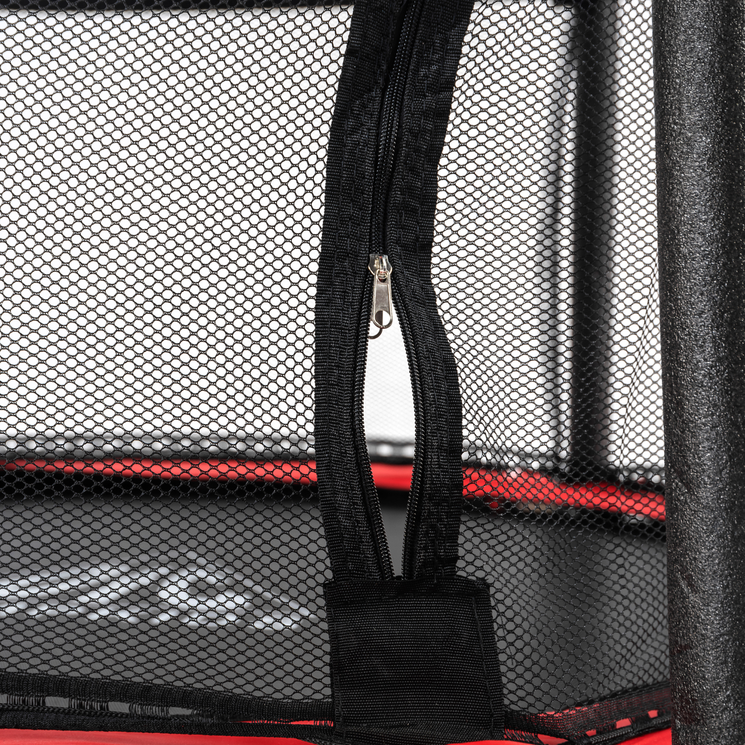 Вход в батут открывается и закрывается на молнию: бегунок размещен снаружи, чтобы ребенок не смог открыть его самостоятельно. Данное свойство позволяет оставить ребёнка одного на батуте, не боясь, что он получит травму.
