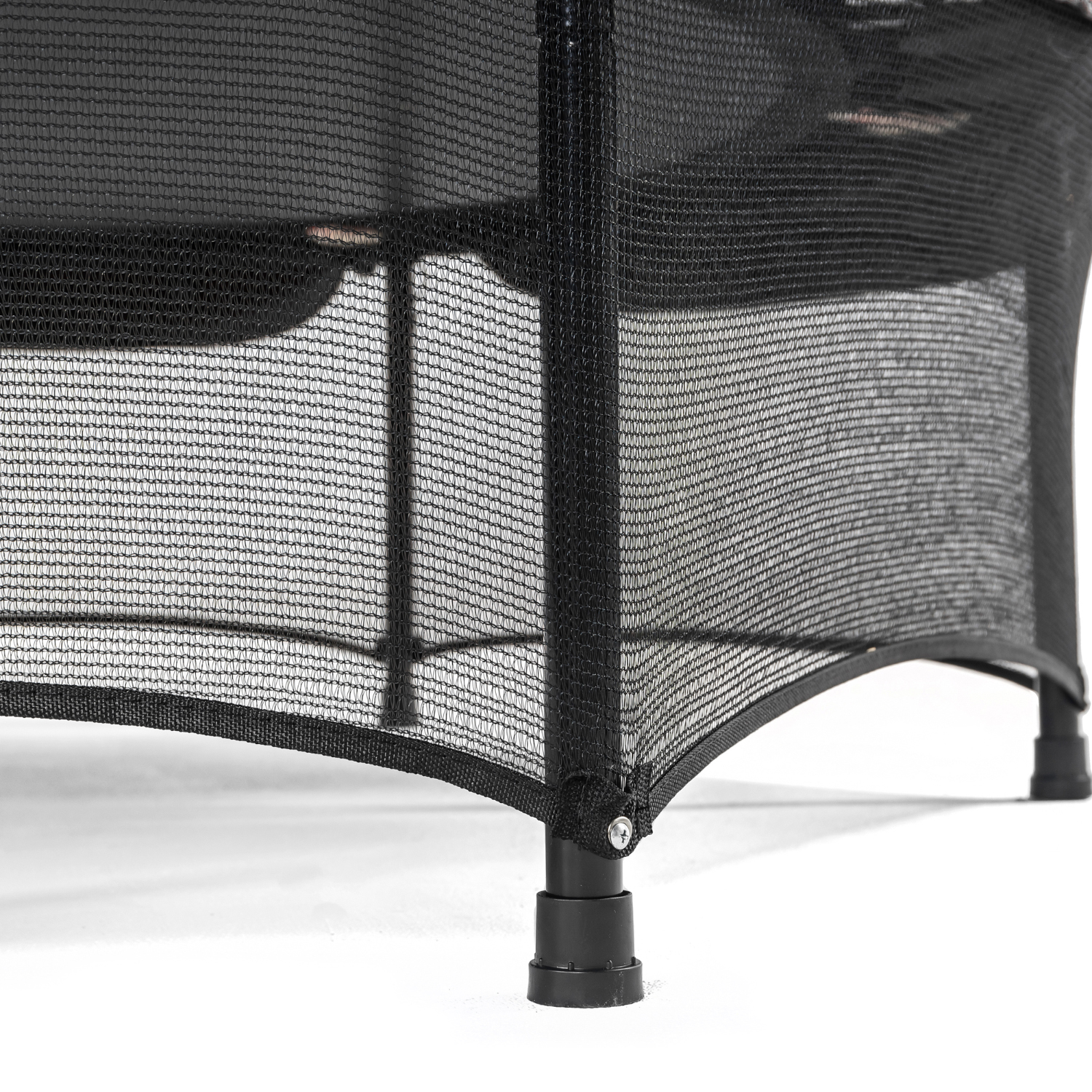 Рама изготовлена из круглой трубы диаметром 25 мм и толщиной 1 мм. Ножки диаметром 25 мм и толщиной 1 мм с резиновыми накладками, благодаря которым батут более устойчив во время прыжков.