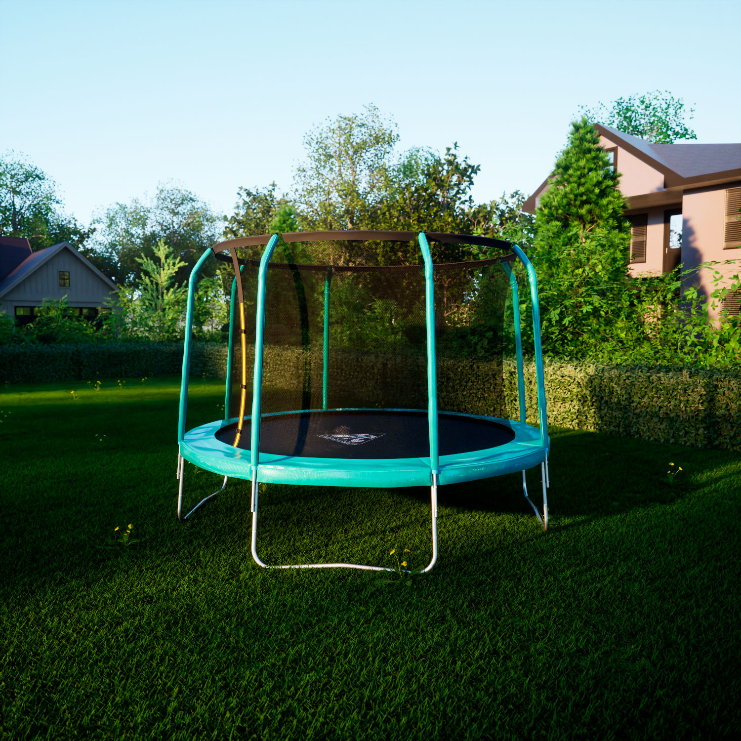 Для обеспечения безопасности пользователя, пружины закрыты защитным чехлом (защитным матом). Высота батута от пола до прыжкового полотна 85 см. Диаметр батута составляет 365,76 см.