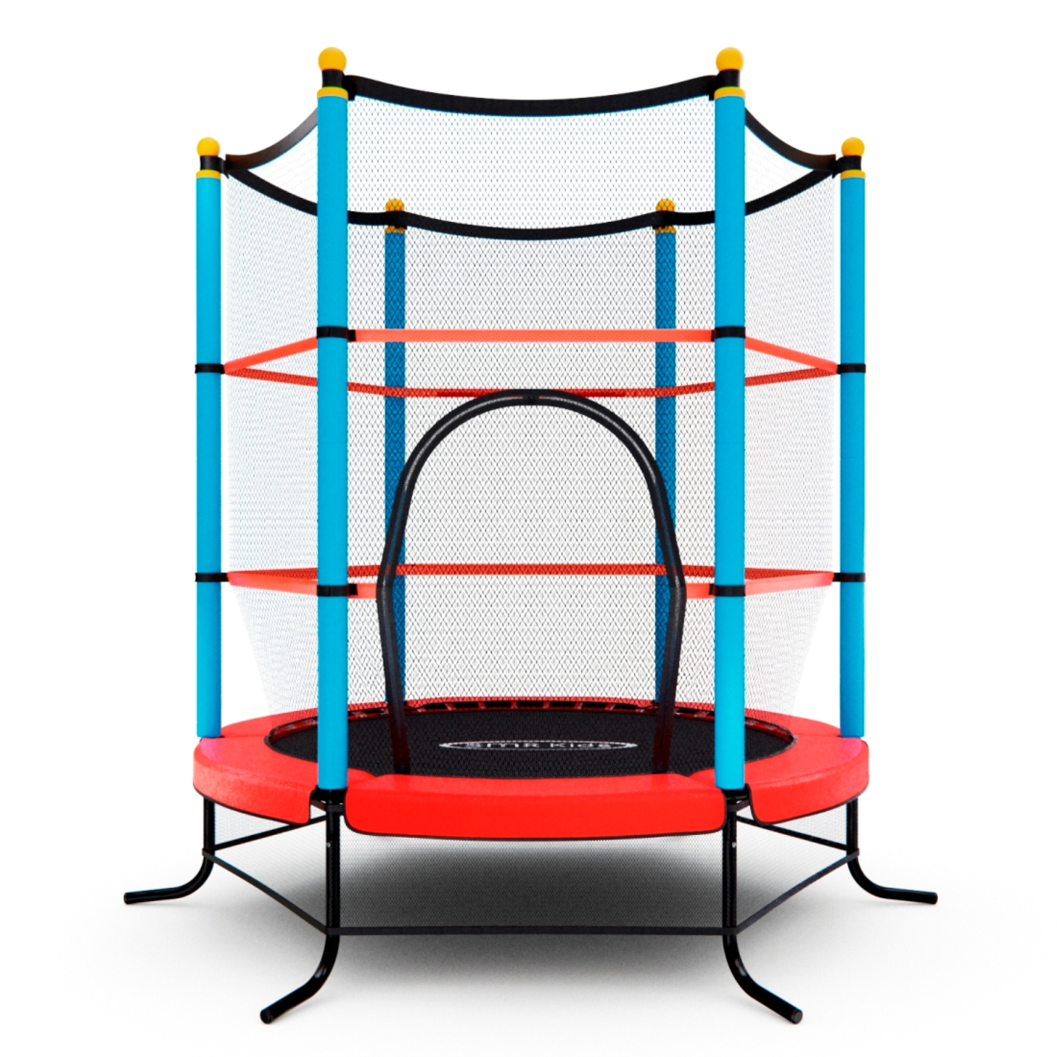 Основная рама батута состоит из 6-ти прочных стальных труб диаметром 25 мм, что обеспечивает устойчивость и безопасность при использовании. U-образные ножки и стойки для защитной сетки также выполнены из высокопрочной стальной трубы диаметром 25 мм.
