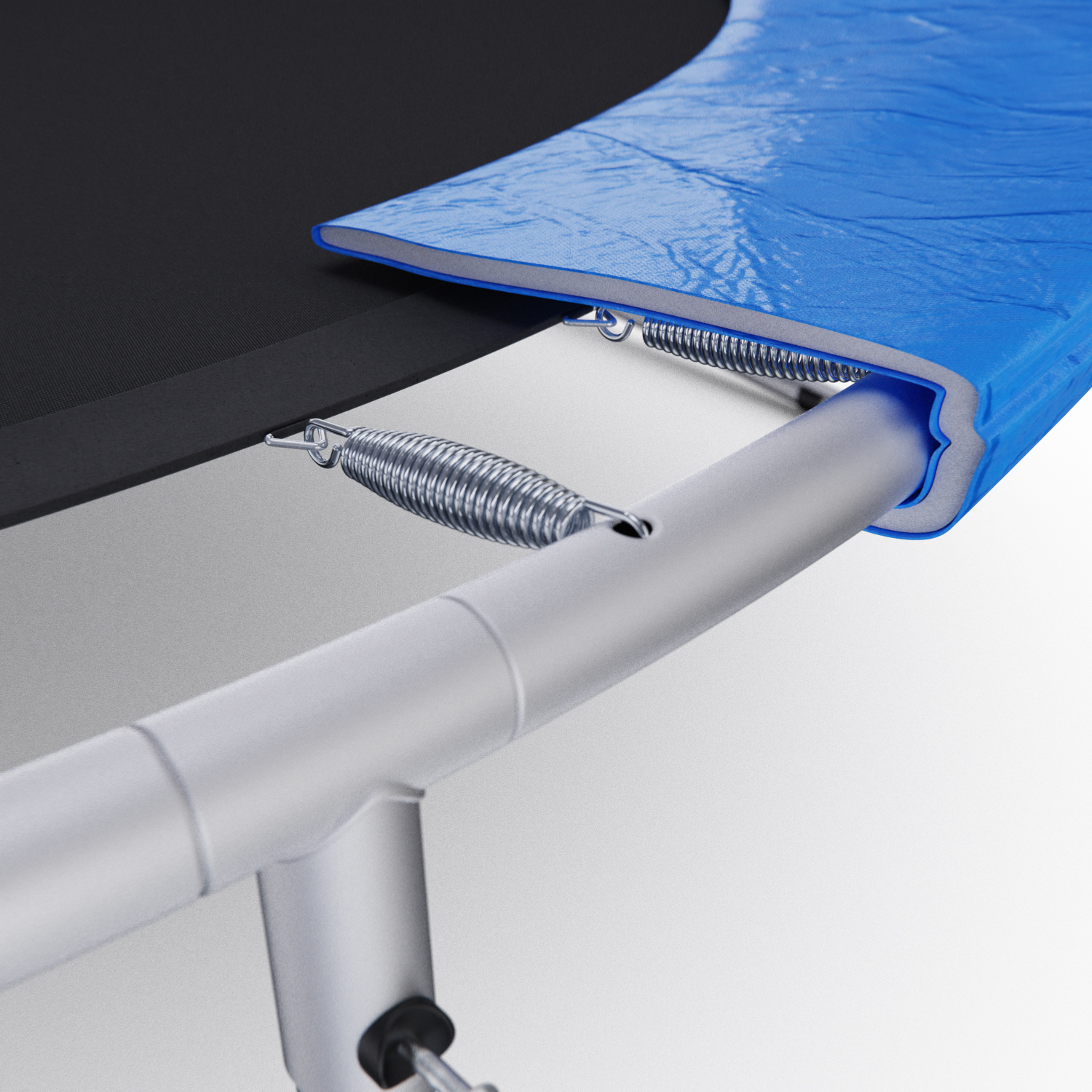 На этом батуте установлено 48 надежных пружин, которые обеспечивают оптимальную жесткость и позволяют прыгать с большой высоты без риска травмы. Пружины диаметром 22 и длиной 135 миллиметров, обеспечивают плавный и мягкий прыжок.
