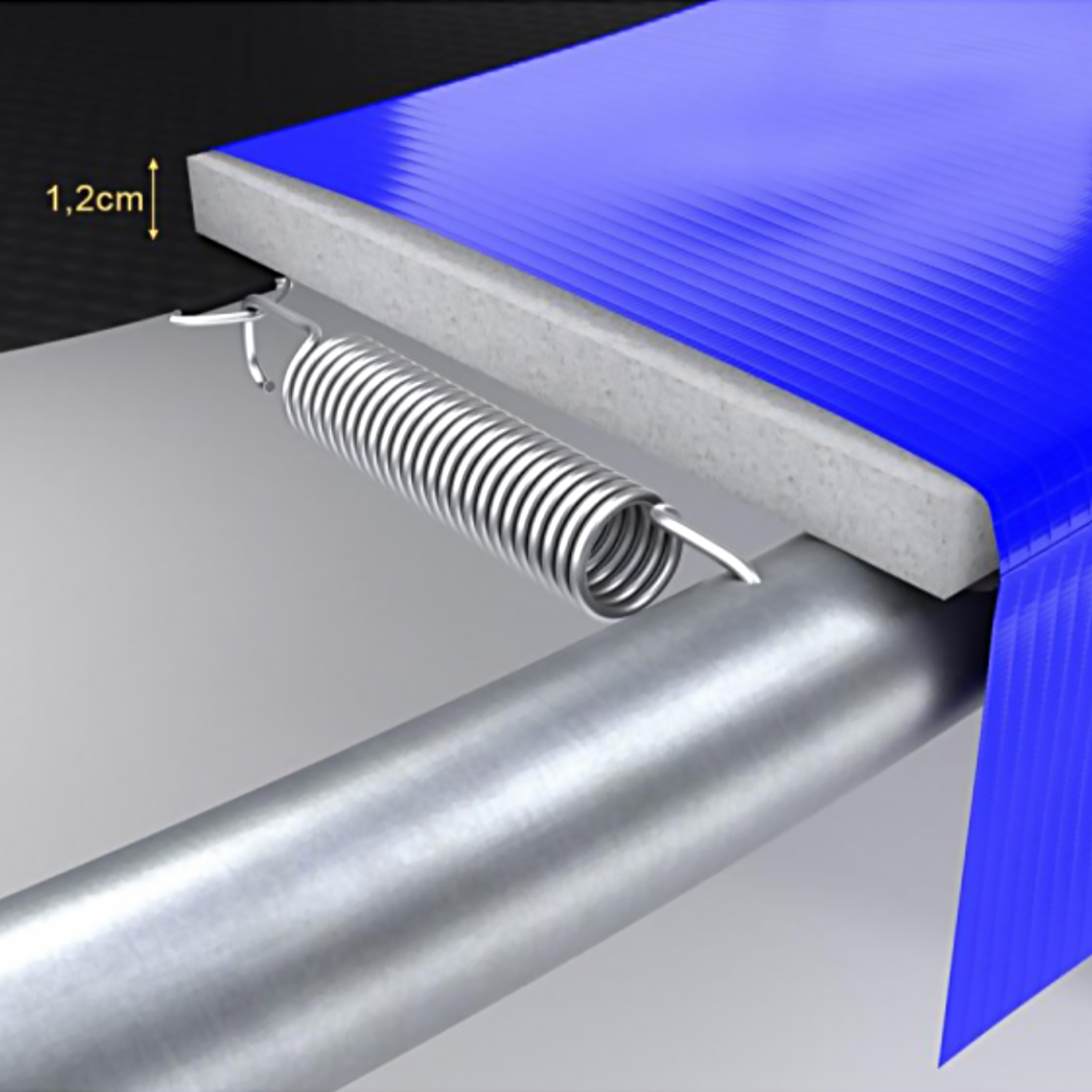 Прыжковое полотно из полипропилена с UV-защитой обеспечивает отличные прыжки и мягкое приземление. Защитный мат толщиной 12 мм обеспечивает дополнительную безопасность при использовании батута.