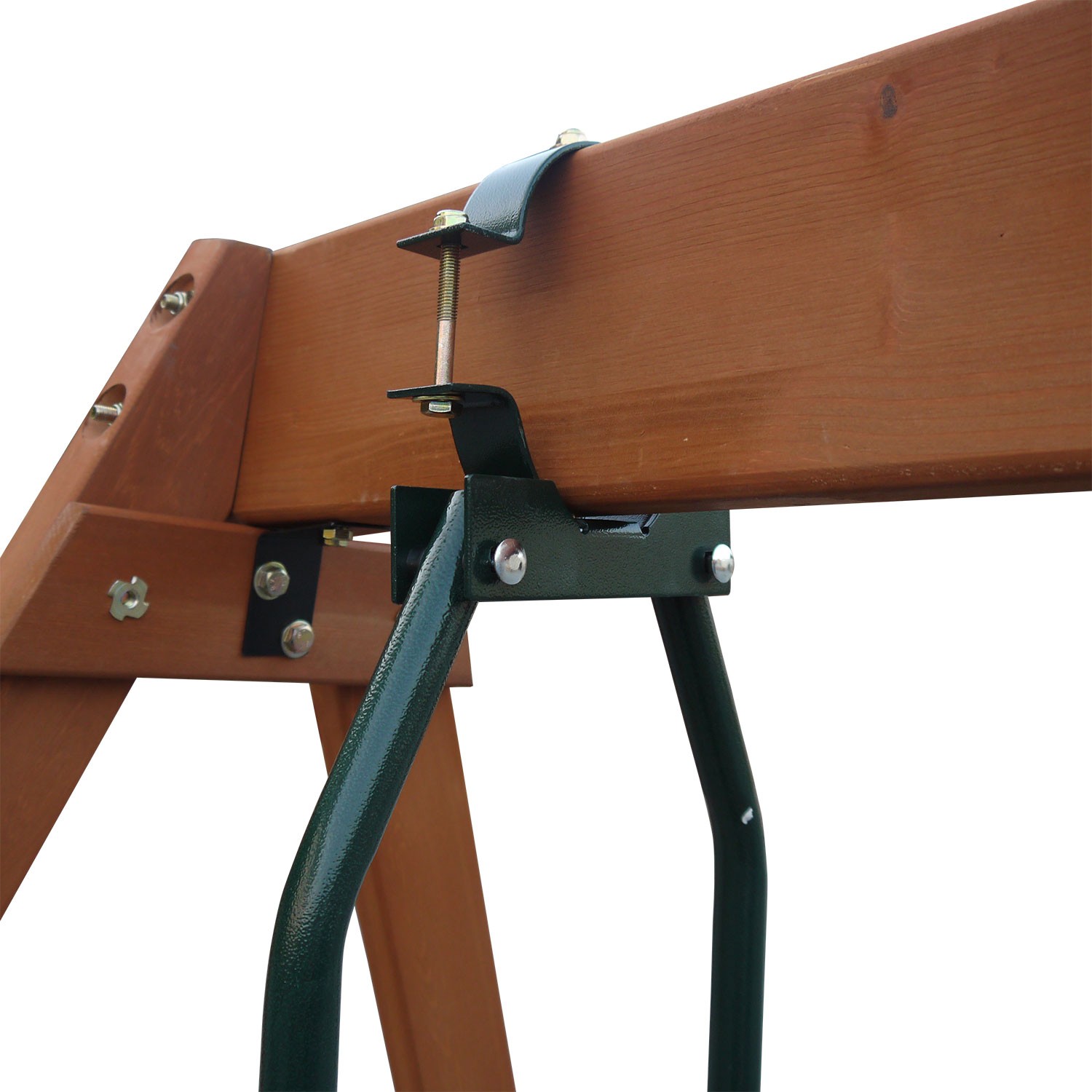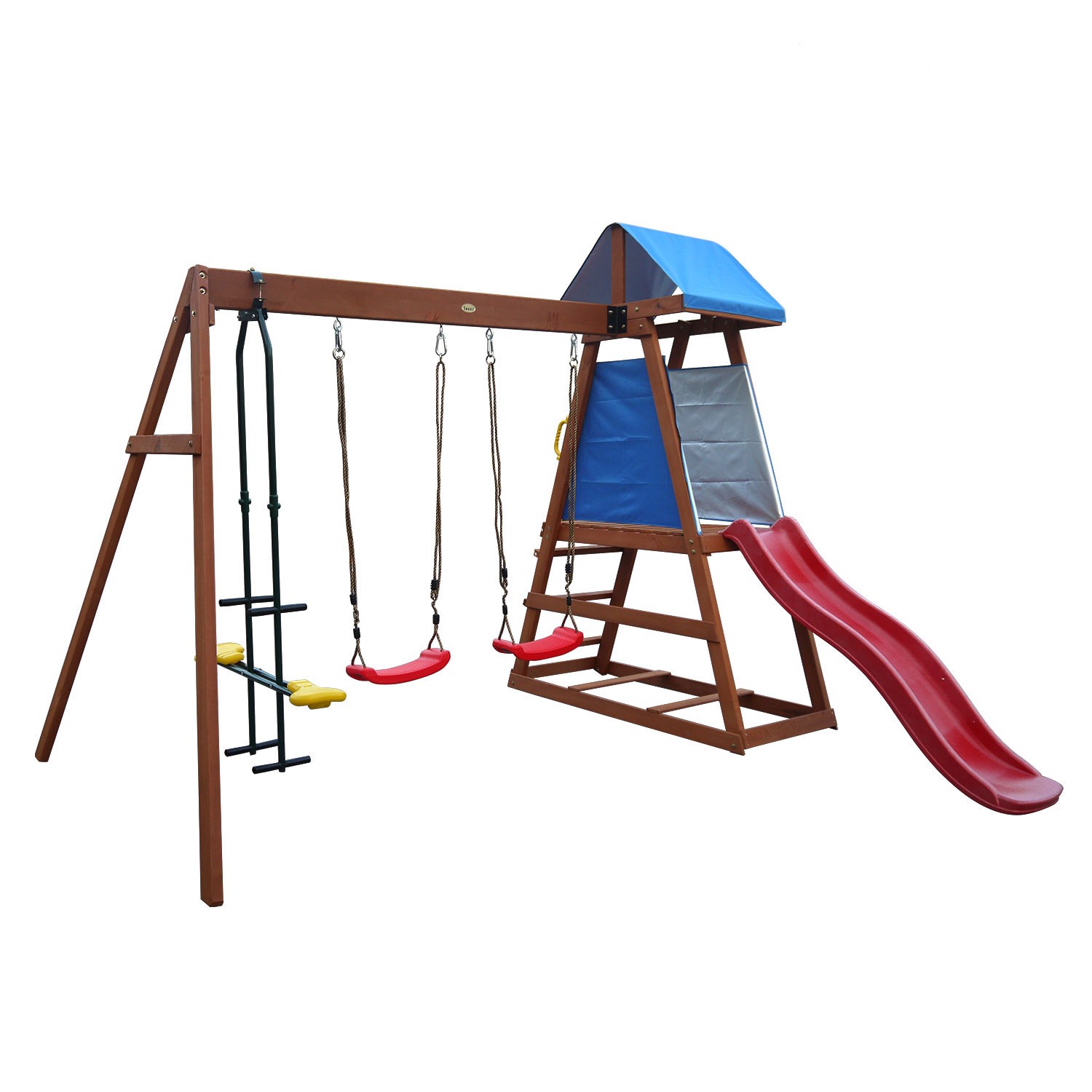 Качели имеют надежное подвесное крепление на боковой части комплекса.