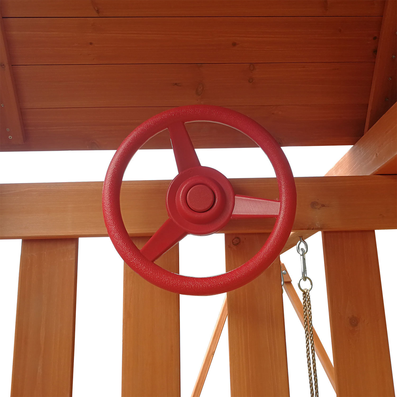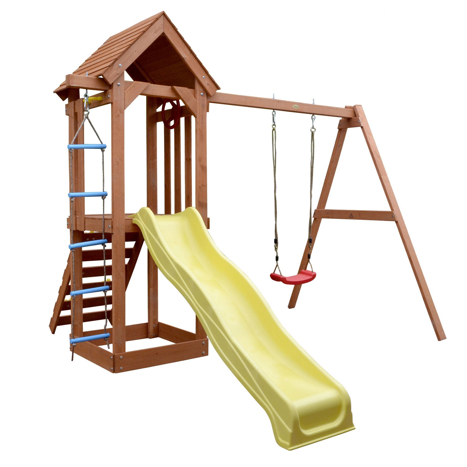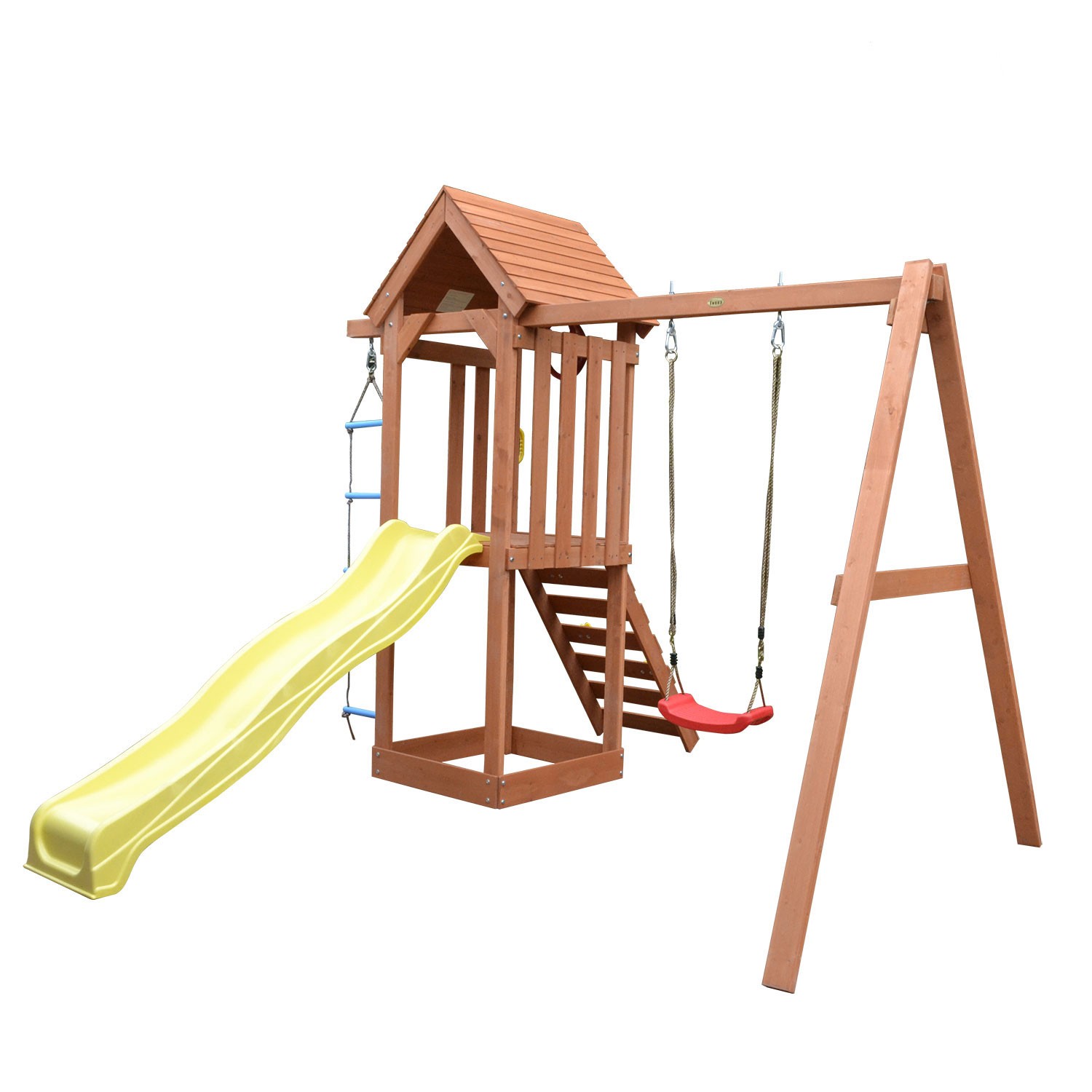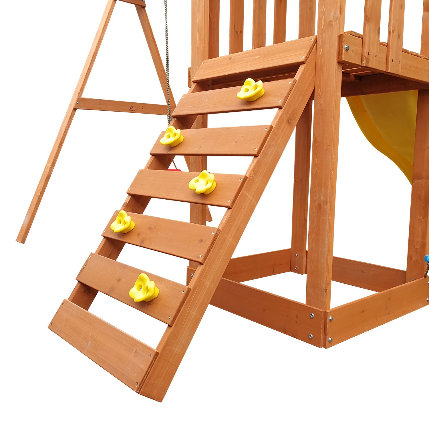 Дополнительными элементами для развлечений служат одиночные качели и веревочная лесенка.
