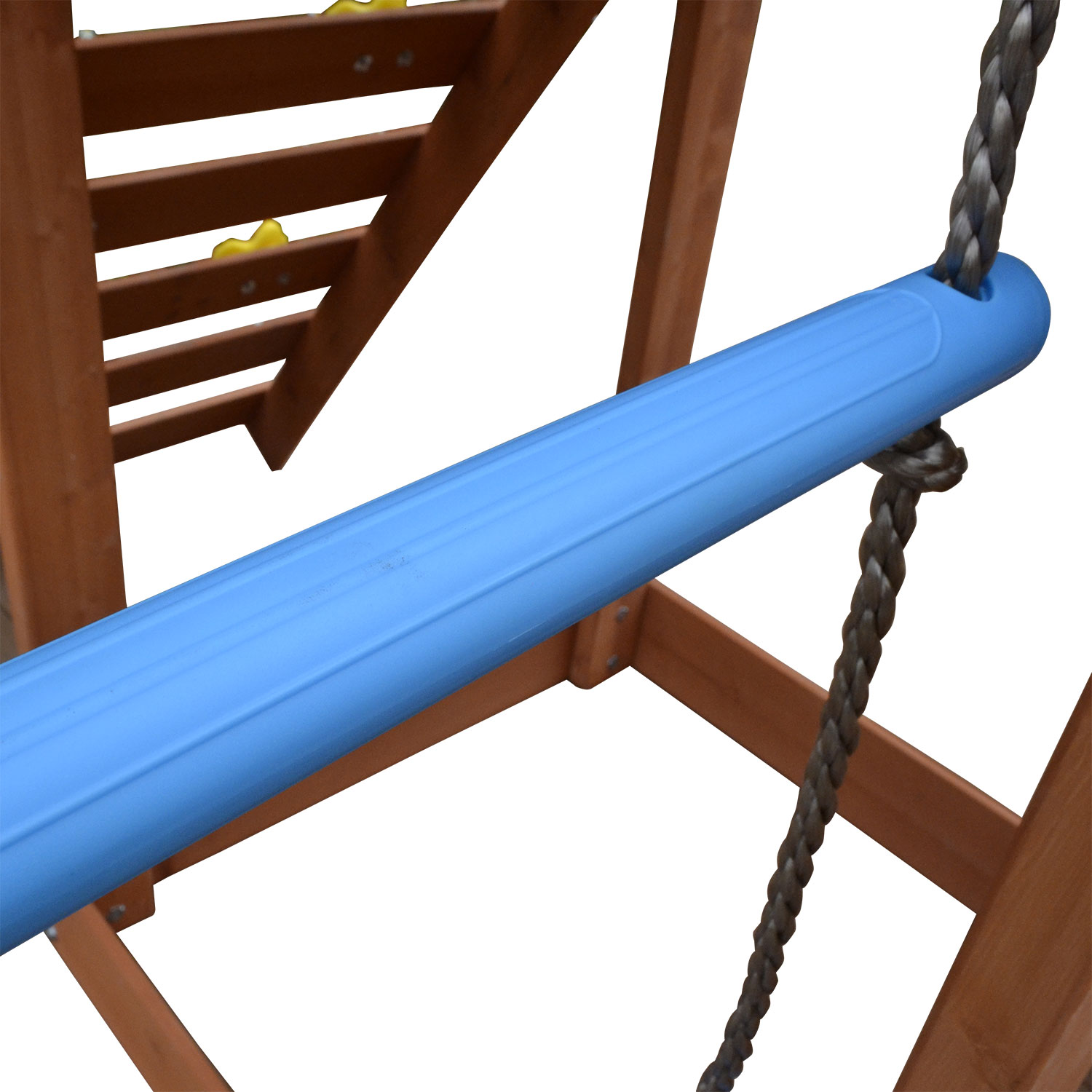 Качели на боковой части комплекса имеют надежное подвесное крепление.