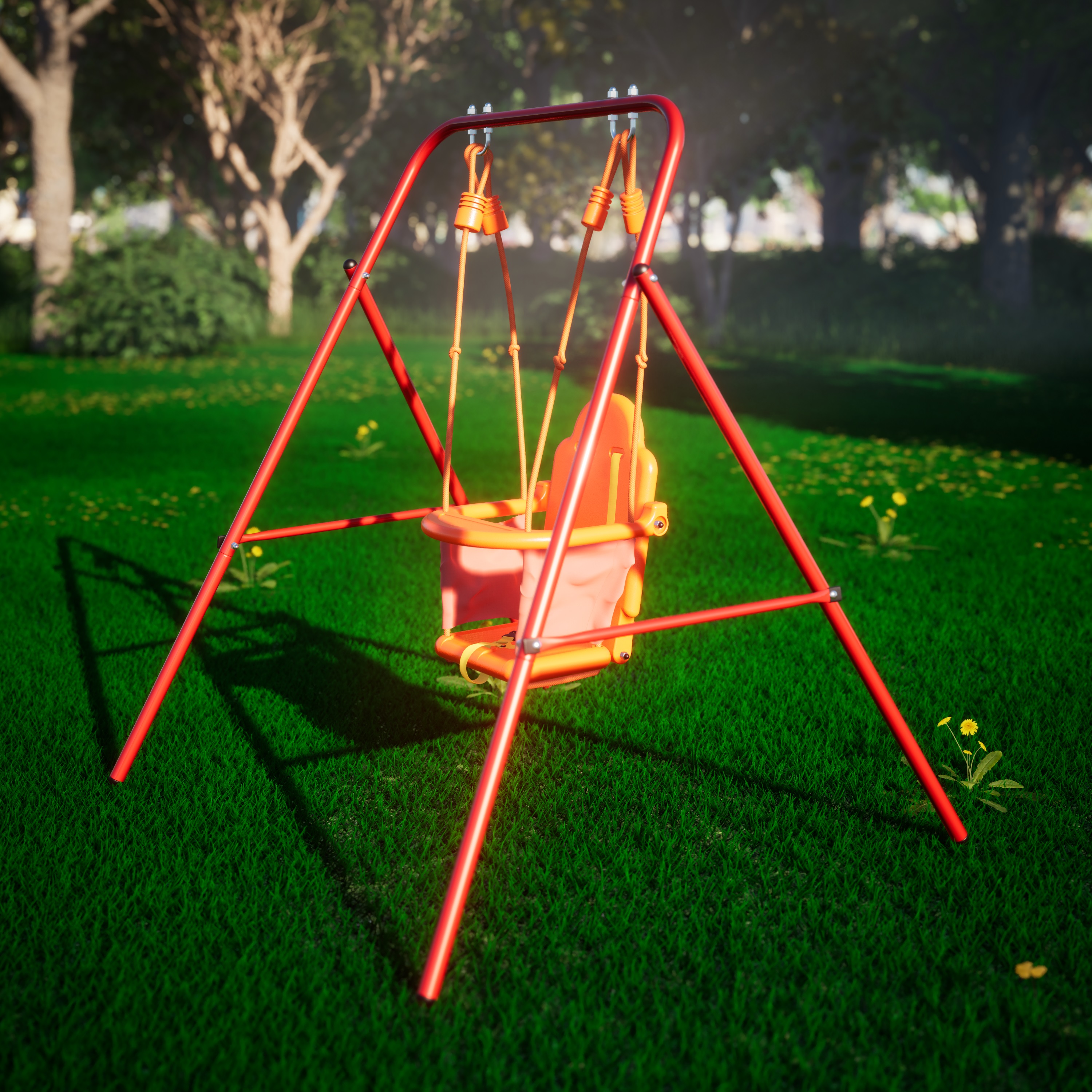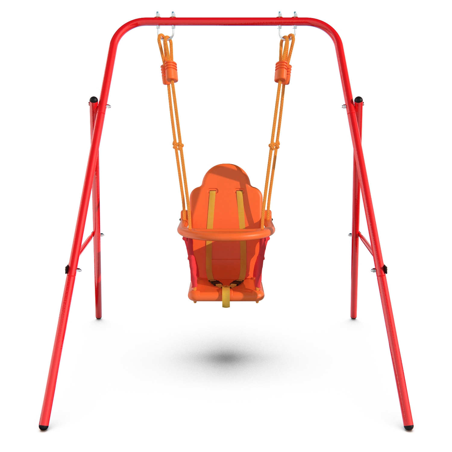 Прочные ремни безопасности с возможностью регулирования и дополнительная передняя планка помогут предотвратить то, чего мы сами так боялись в детстве; стальной профиль 25,4x1,0 мм, из которого выполнена конструкция, придаёт качелям высокую прочность даже при активном использовании и выдерживает нагрузку до 35 кг. Специальная двойная опора не позволяет качелям раскачиваться, поэтому модель подходит даже для маленьких детей от 18 месяцев.