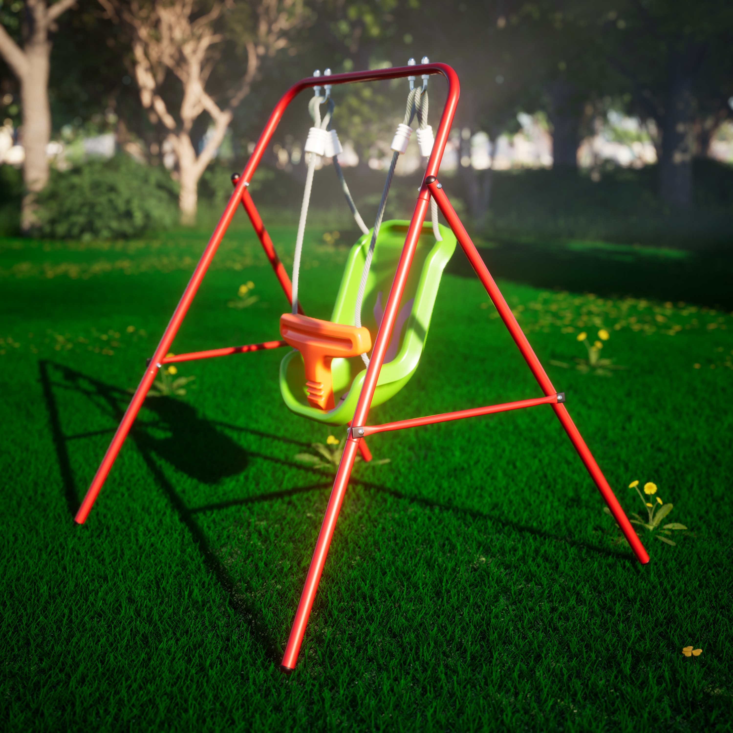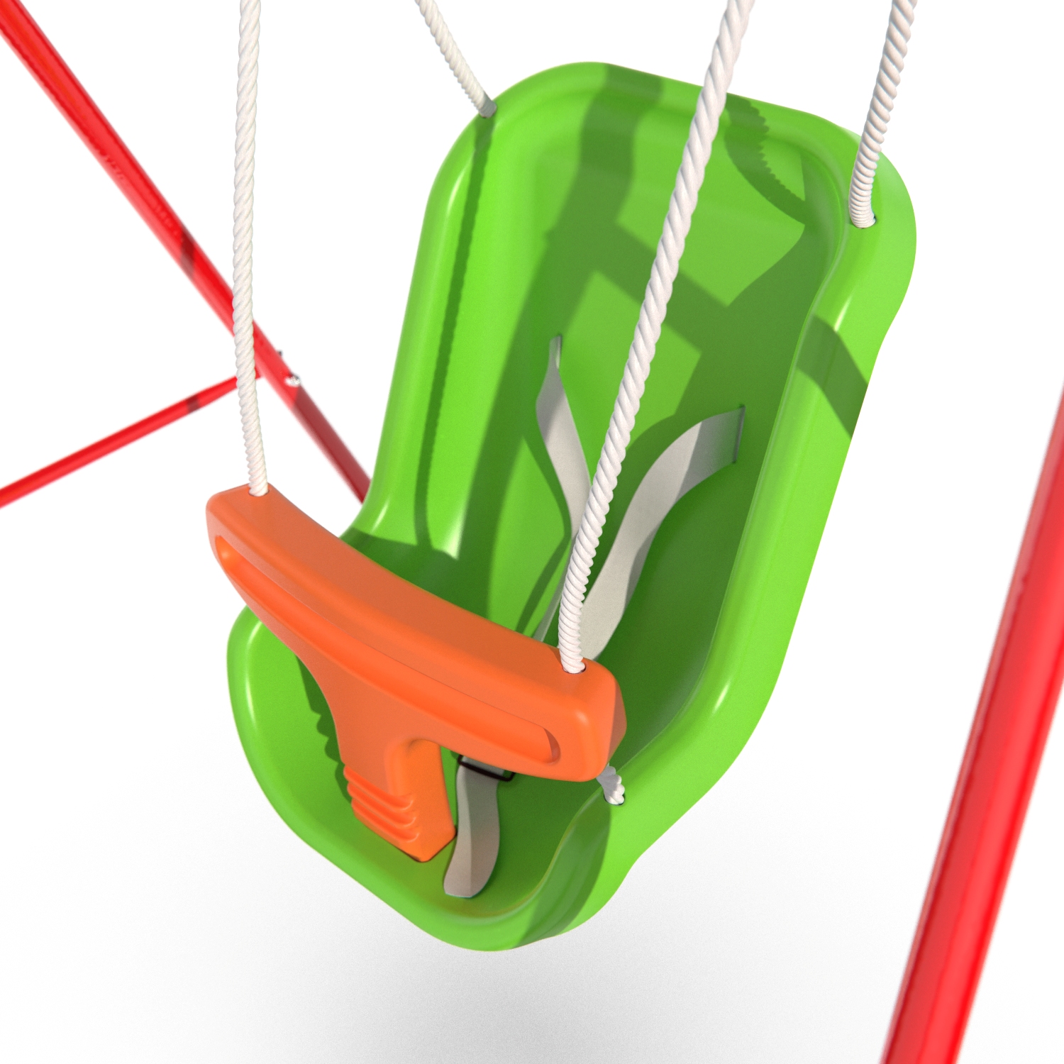 Каркас качелей выполнен из профильной трубы 25,4×1,0 мм, изготовленной из лёгкой, но прочной стали, выдерживающей нагрузку до 35 кг, поэтому качаться на качелях может даже крупный ребенок. Допустимый возраст — от 18 месяцев.