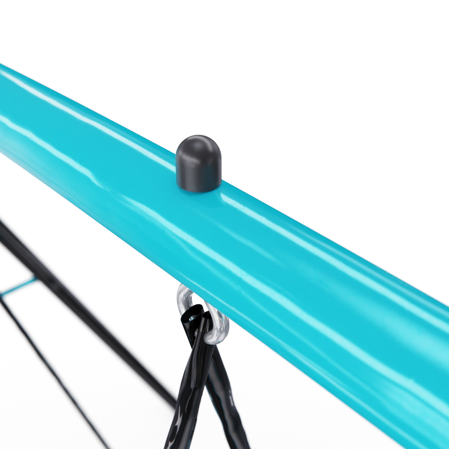 Для обеспечения безопасности зазор между землёй и сиденьем качелей должен быть не менее 20 см. Чтобы качели были устойчивыми, рекомендуется закрепить их с помощью земляных анкеров. Рама качелей выполнена из профиля размером 50 х 1,5 мм, что гарантирует их надёжность и долговечность.