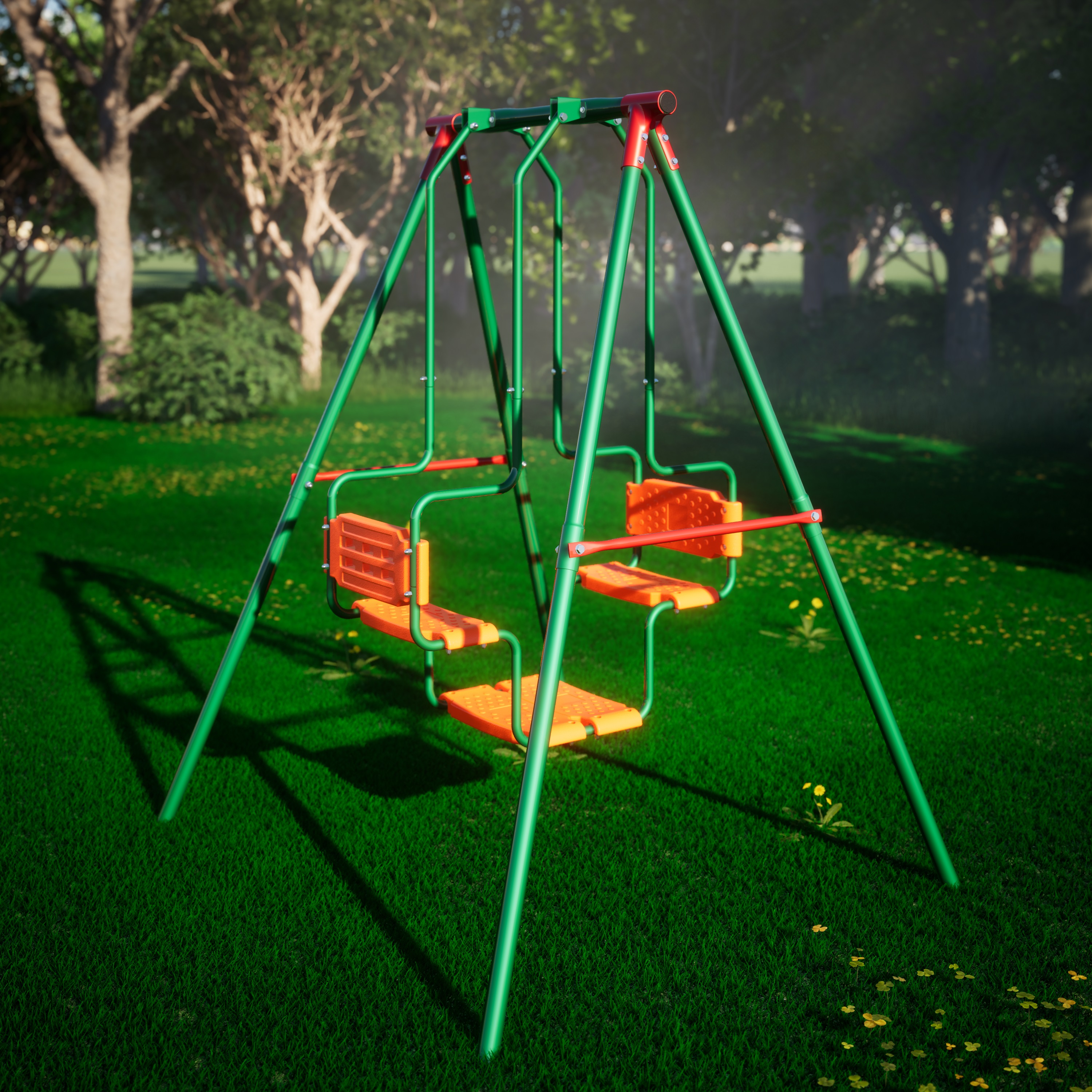 Детские уличные качели двуместные зеленые SSN-02L подходит для детей: 3-10 лет