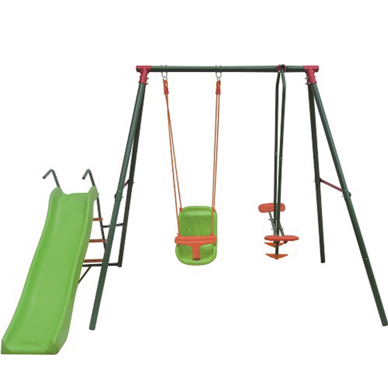 Спускной желоб и сидение качелей изготовлены из пластика.