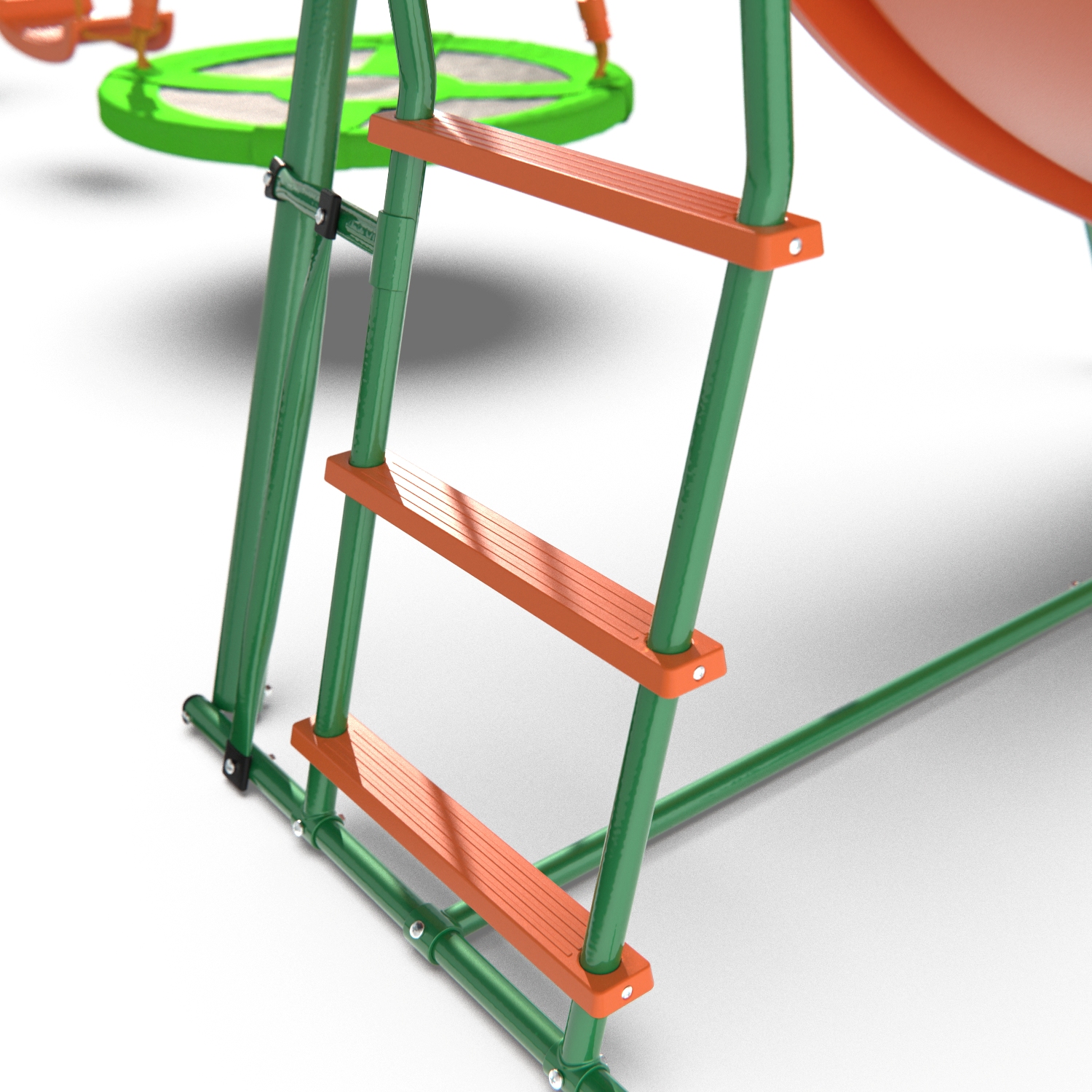 Основной конструктивный элемент каркаса — стальной профиль 50,8×2 мм, 45×1,5 мм и 25,4×1,0 мм, при производстве которого используется только сертифицированная высококачественная сталь, что гарантирует прочность каркаса, а также защиту от коррозии. Все детали качелей тщательно отшлифованы и не имеют острых углов, поэтому на комплексе могут заниматься как детки от 3 лет, так и совсем крохи от 18 месяцев. Максимальная нагрузка 145 кг.