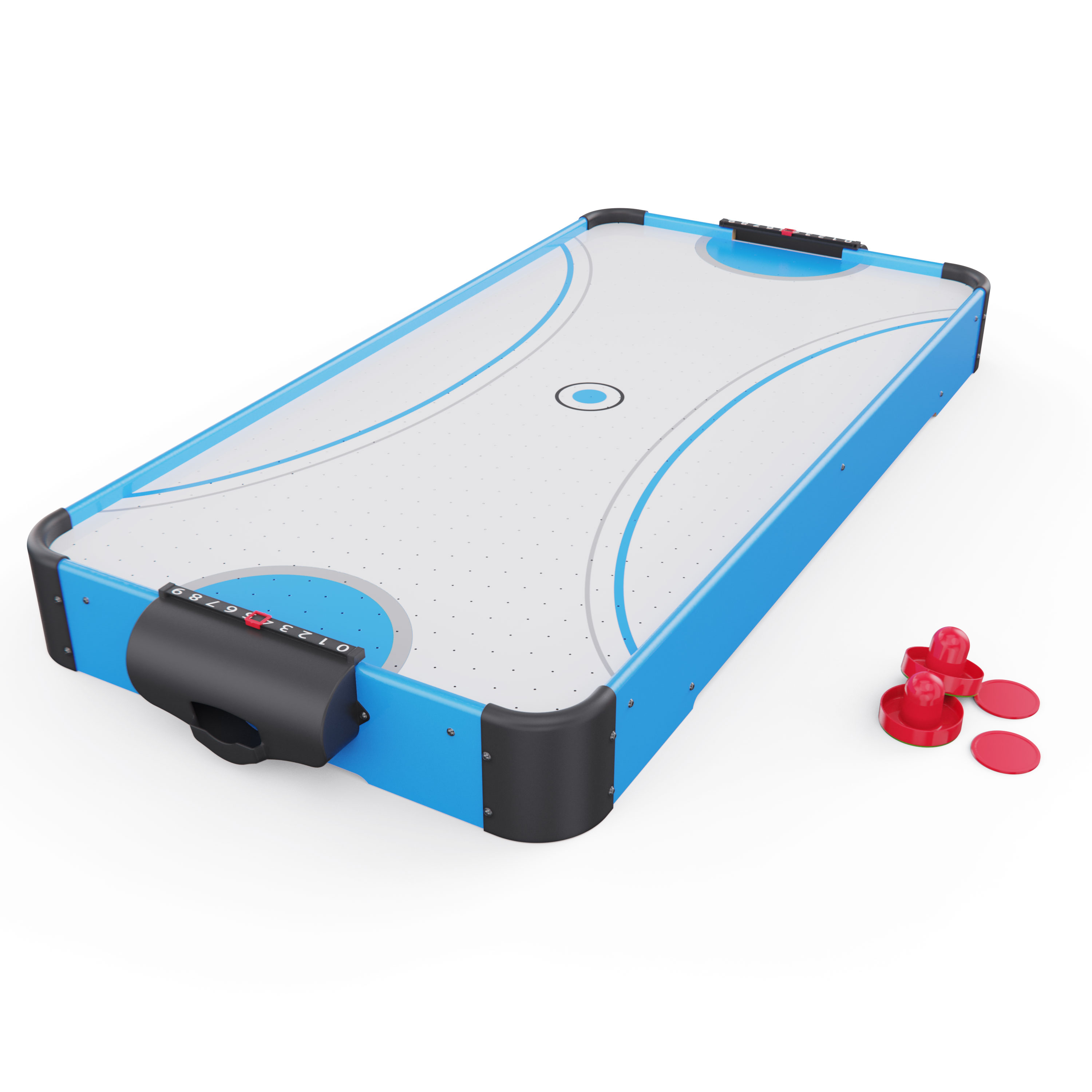 Игровой стол оснащён вентилятором на 220V, создающим воздушную подушку под шайбой. Это обеспечивает лёгкое и быстрое скольжение по полю, делая игру более захватывающей и реалистичной.