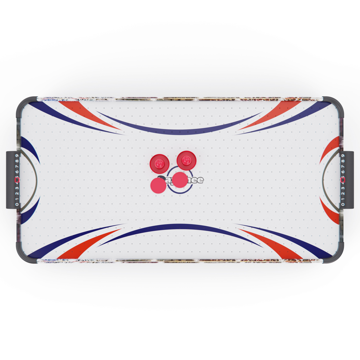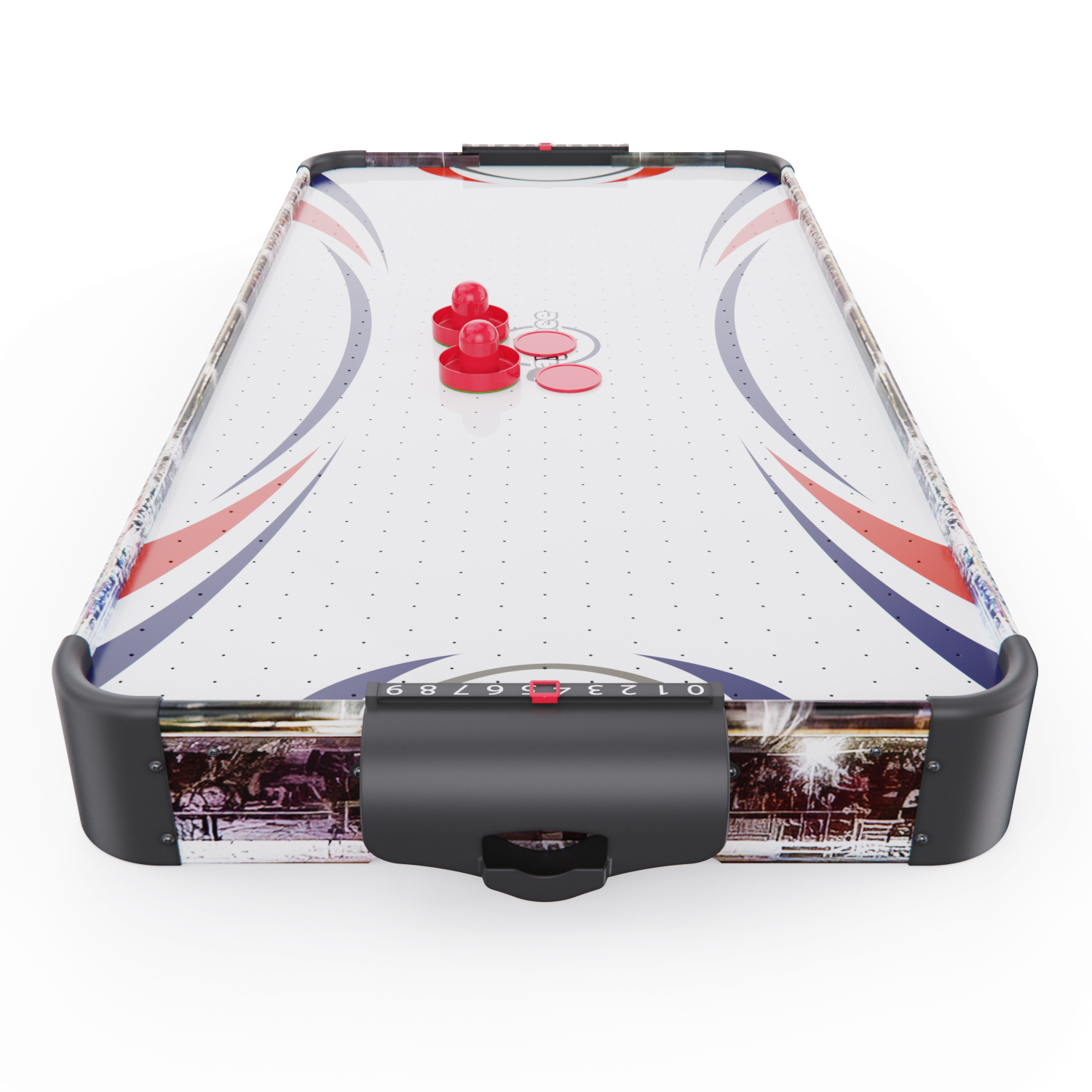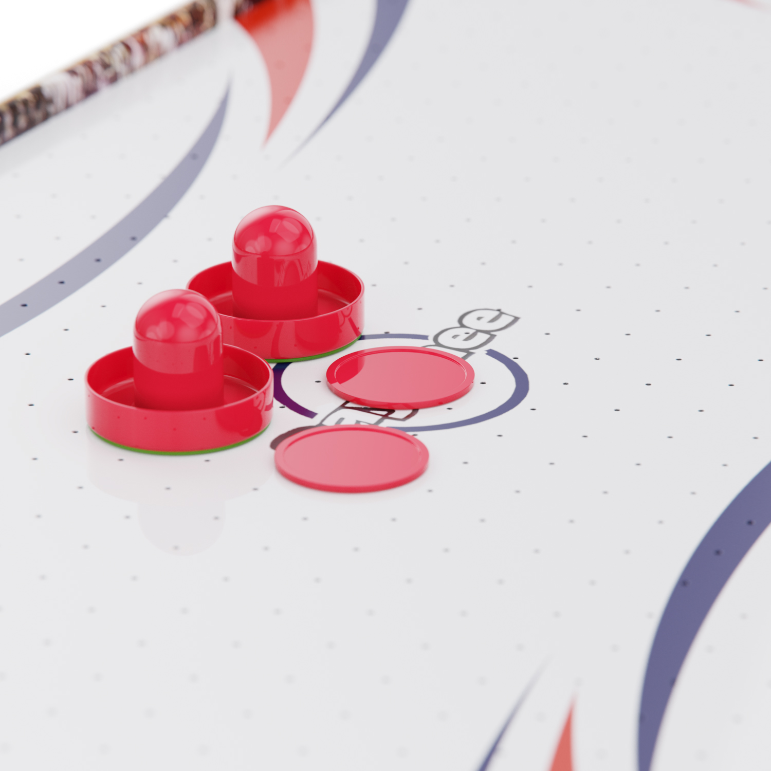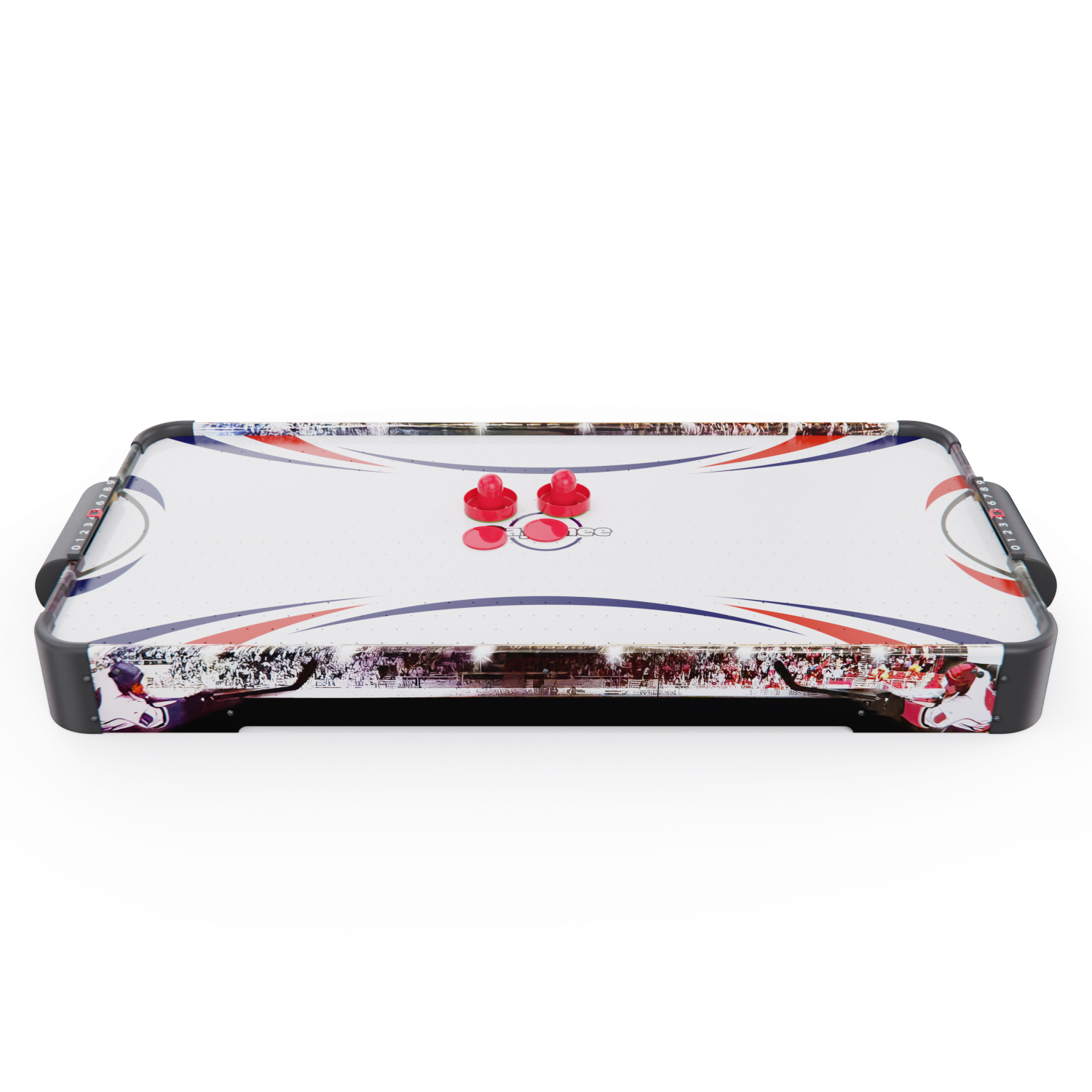 Игровой стол оснащён вентилятором на 220V, создающим воздушную подушку под шайбой. Это обеспечивает лёгкое и быстрое скольжение по полю, делая игру более захватывающей и реалистичной.