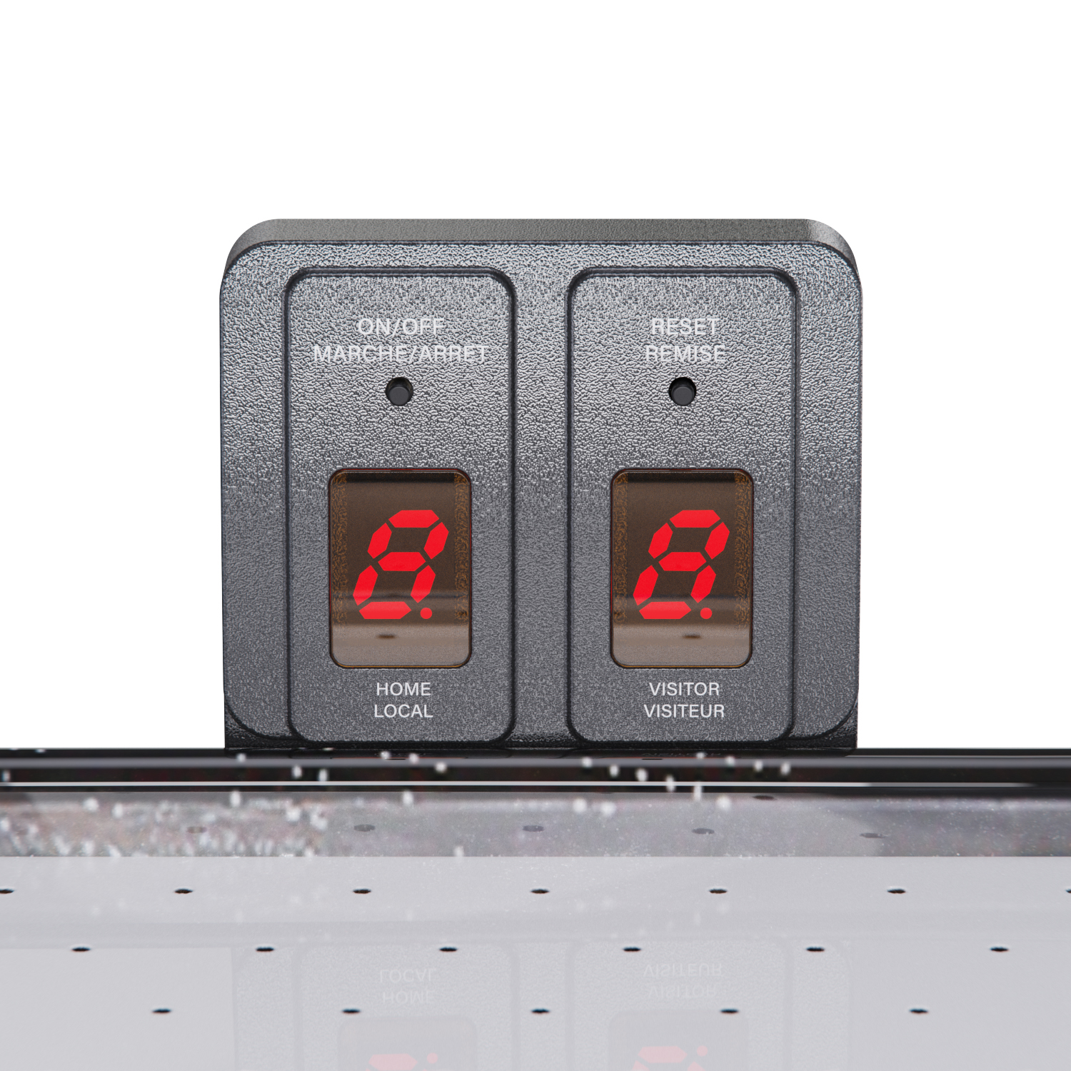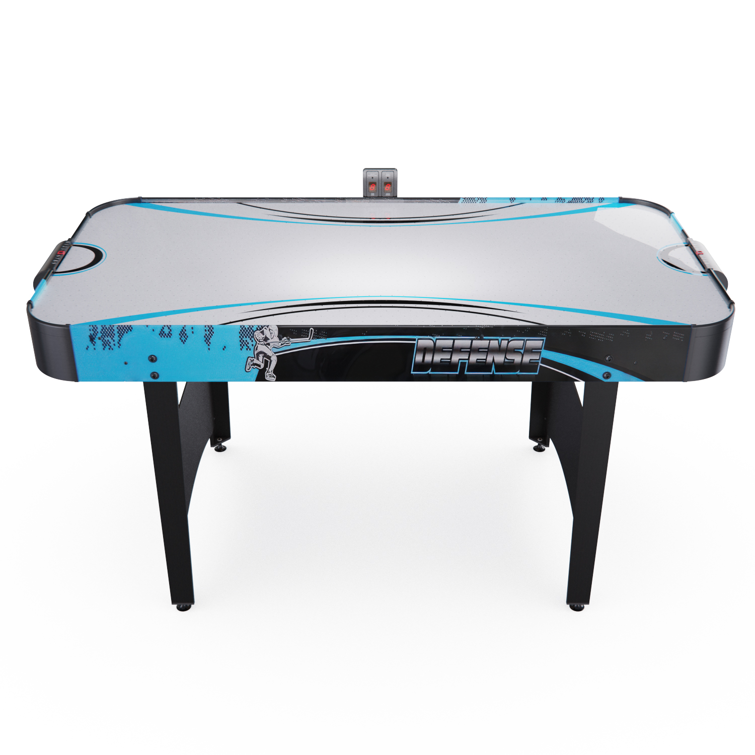 Аэрохоккей LUGANO оборудован электронным табло для подсчета забитых шайб. И дополнительно возле каждого игрока установлен механический счетчик. Корпус выполнен из специально обработанного МДФ, сверху покрытого прочным ПВХ ламинатом. Компрессор подает воздух через отверстия по всей поверхности стола. Напряжение 230В.