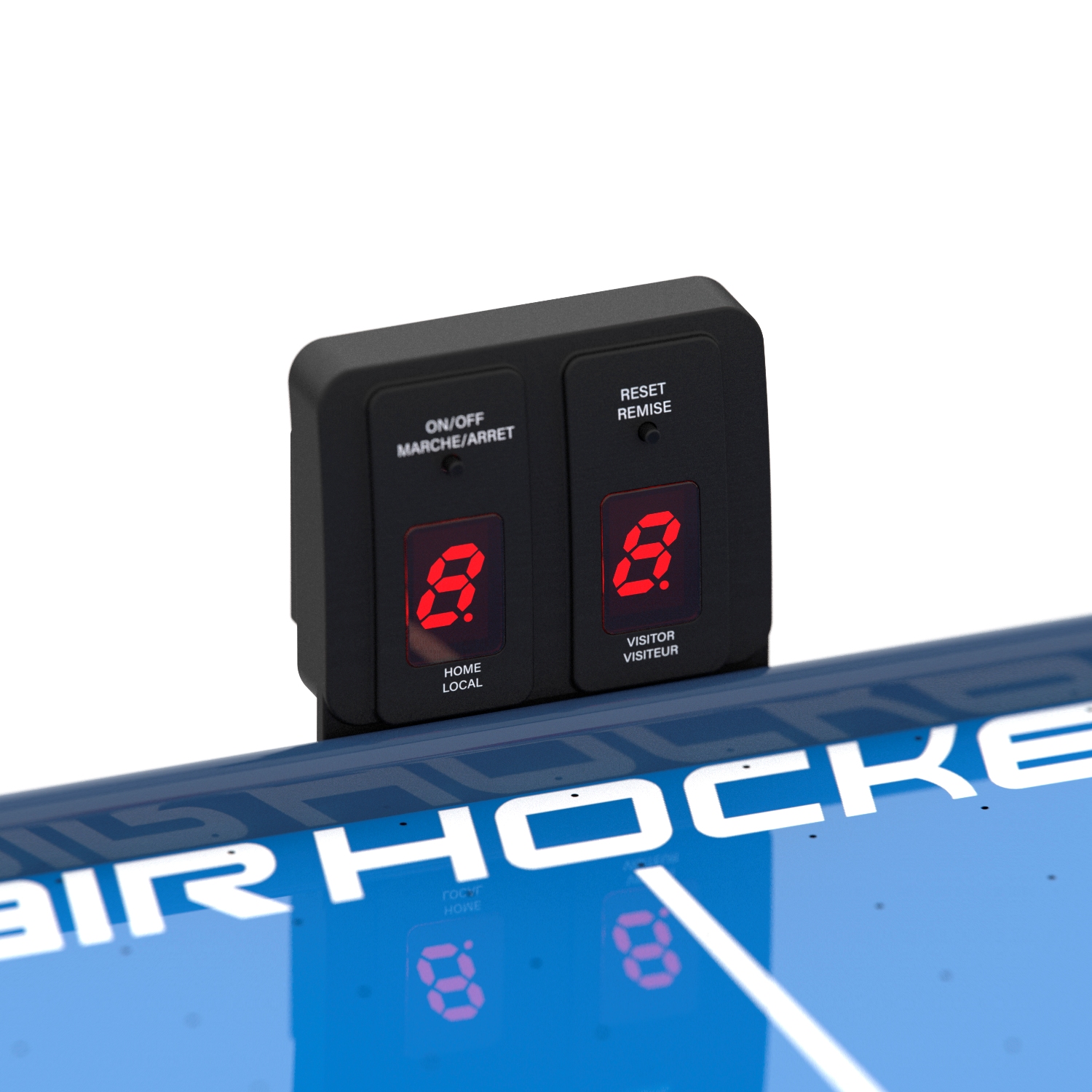Игровой стол - аэрохоккей DFC ZONE оборудован электронным табло для подсчета забитых шайб во время игры. Корпус выполнен из специально обработанного МДФ, сверху покрытого прочным ламинатом. Воздушный вентилятор подает воздух через отверстия по всей поверхности стола. Напряжение: 220В (через адаптер)