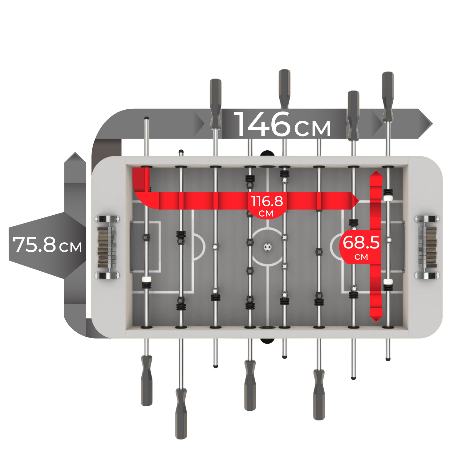 Игровой стол будет не только отличной покупкой для себя, но и прекрасным подарком. Игра в настольный футбол очень эмоциональная, захватывающая и проходит на больших скоростях. Почувствуйте звуки и атмосферу знаменитой и популярной игры!
