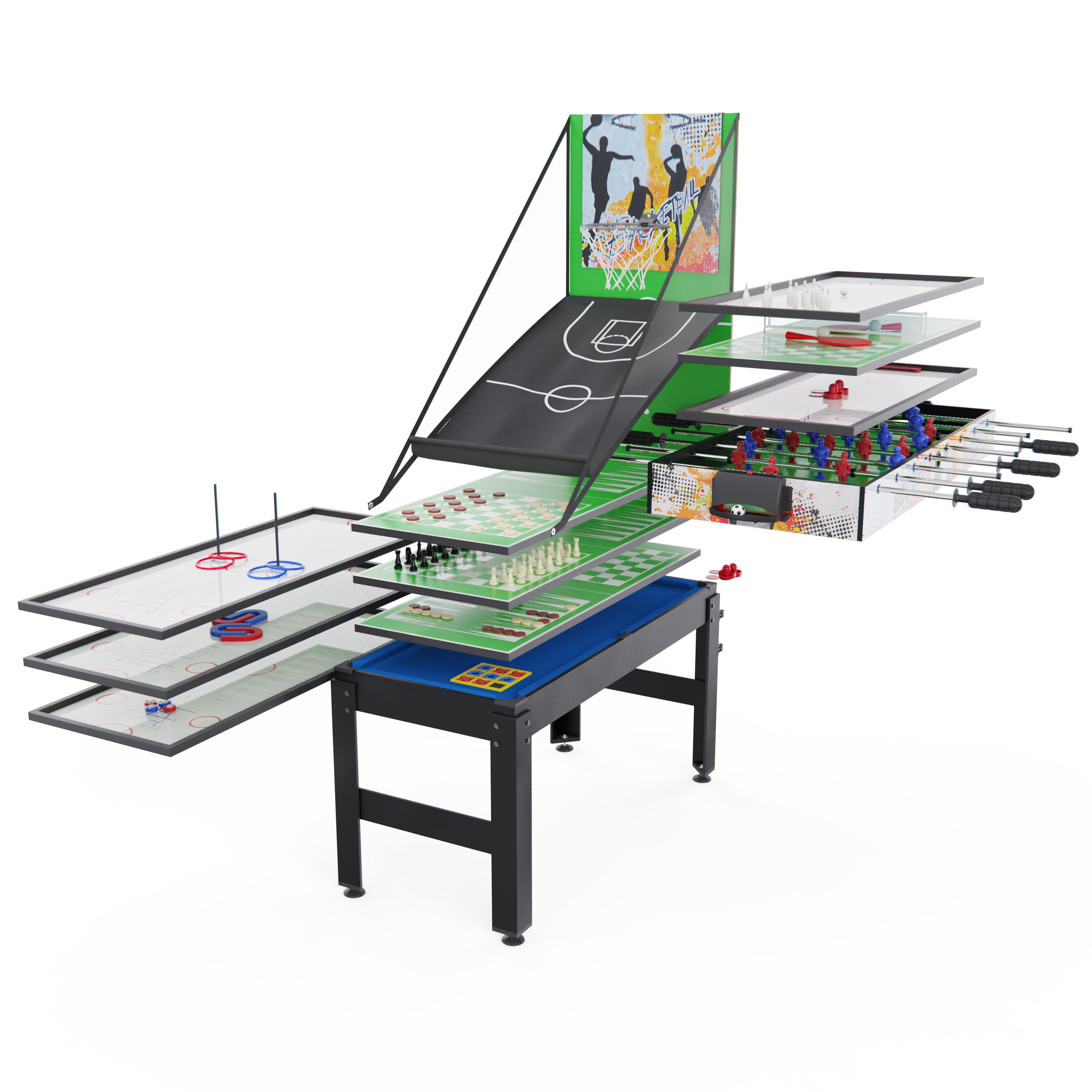 Многофункциональный игровой центр представляет собой уникальное решение для организации активного досуга в домашних условиях. Компактный стол-трансформер объединил в себе 15 различных игровых поверхностей, способных увлечь как детей, так и взрослых.
