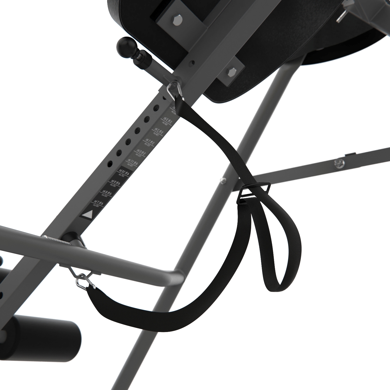 Тренажер легко подстраивается под нужды пользователя. Можно настроить по росту (140-196 см), изменить угол наклона , поменять положение валика для ног и высоту тренажера, чтобы расширить комплекс упражнений. А складная конструкция позволяет легко хранить и транспортировать стол.