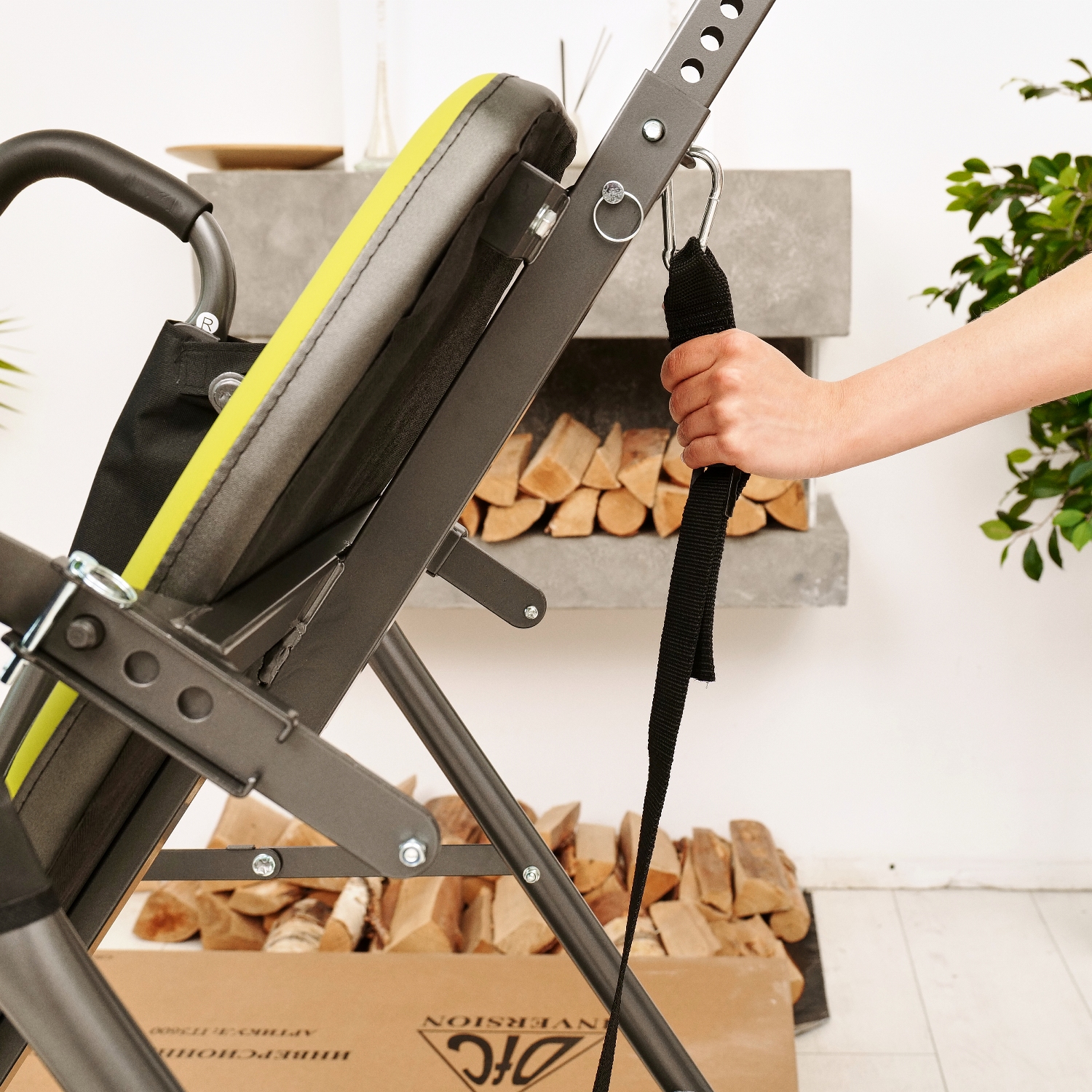 Складной инверсионный стол DFC IT5600 – оптимален для комплексных домашних тренировок. Тренажер подходит для закрепления результата после тренировок всех групп мышц спины, рук и поясницы, улучшает осанку и укрепляет мышечный корсет.