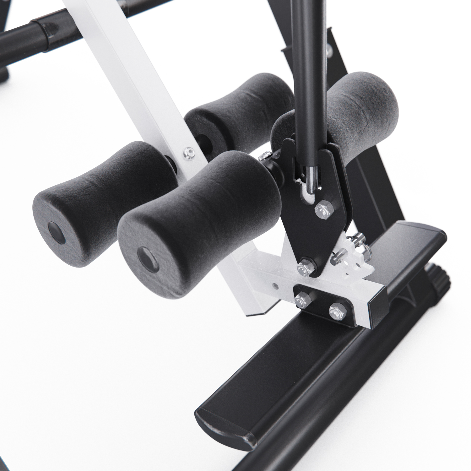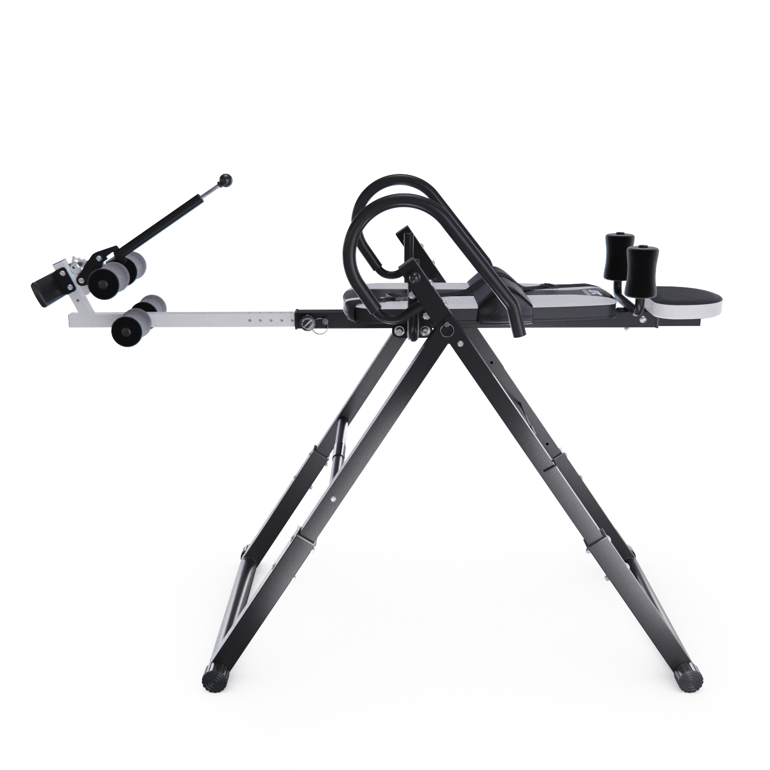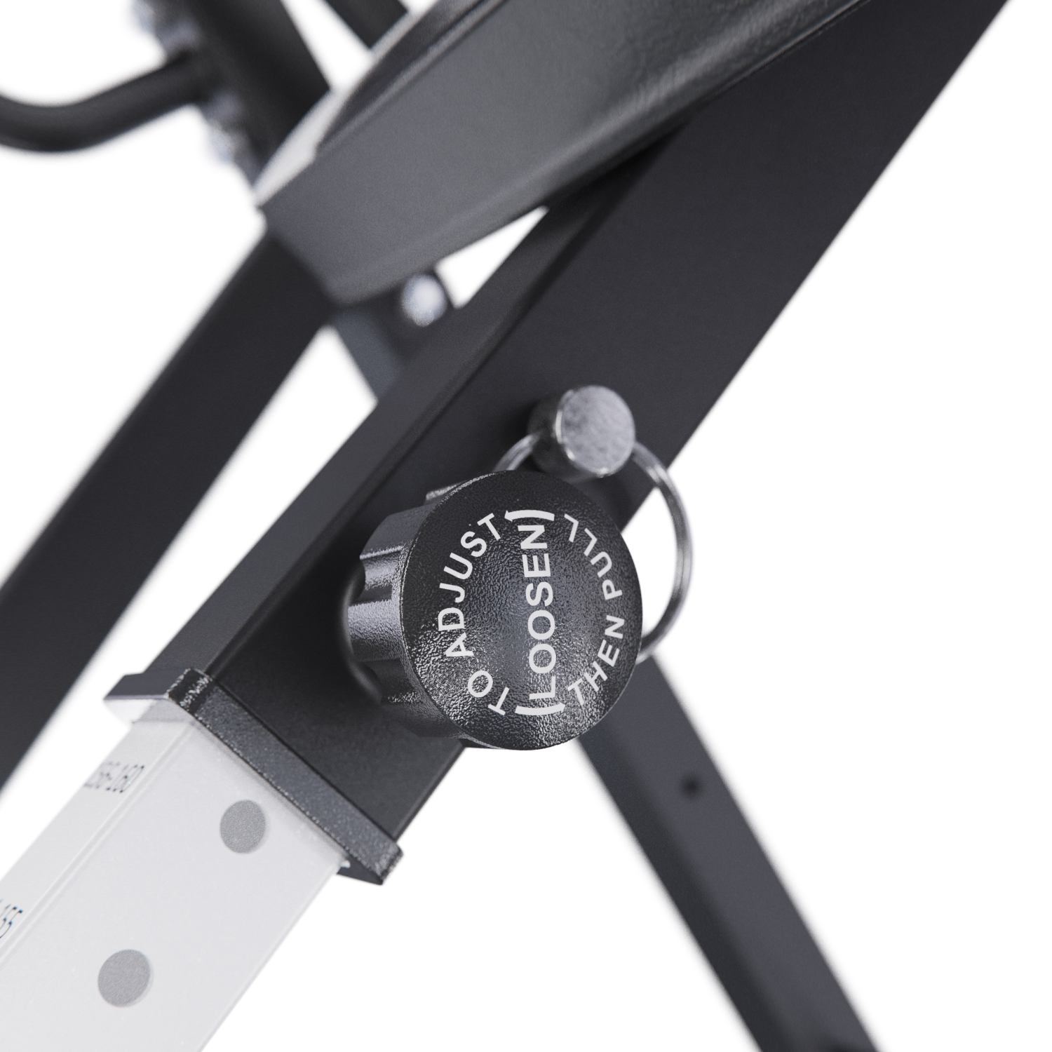 Максимальный вес пользователя составляет 150 кг. Ограничитель угла наклона в виде перекладины позволяет регулировать угол наклона в трёх положениях. Складная конструкция стола облегчает хранение и транспортировку.