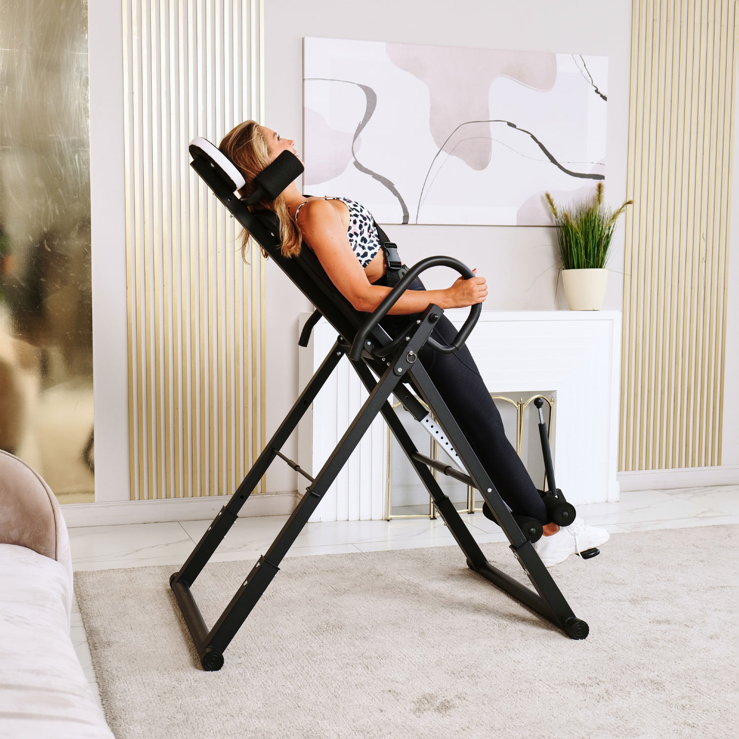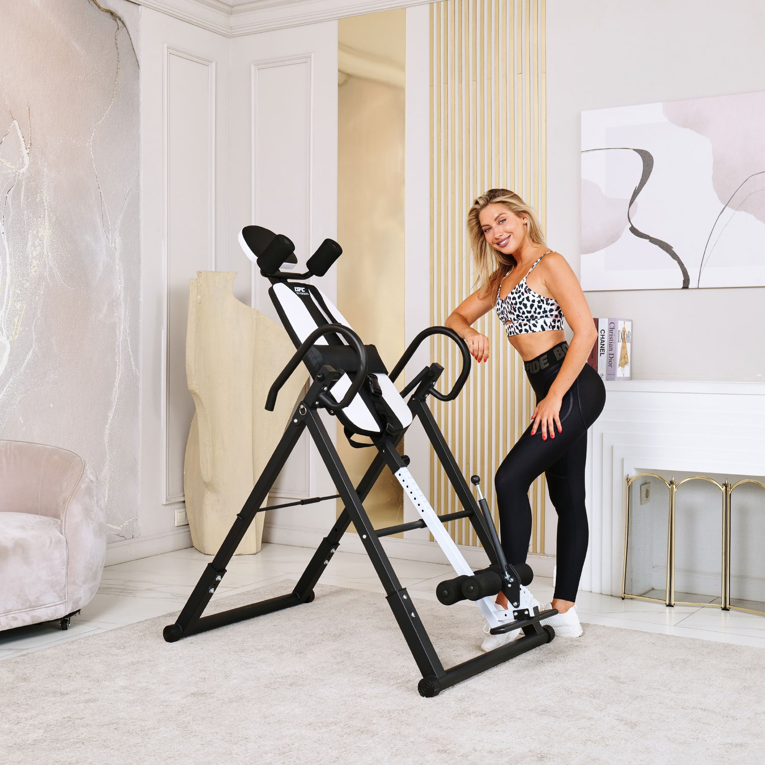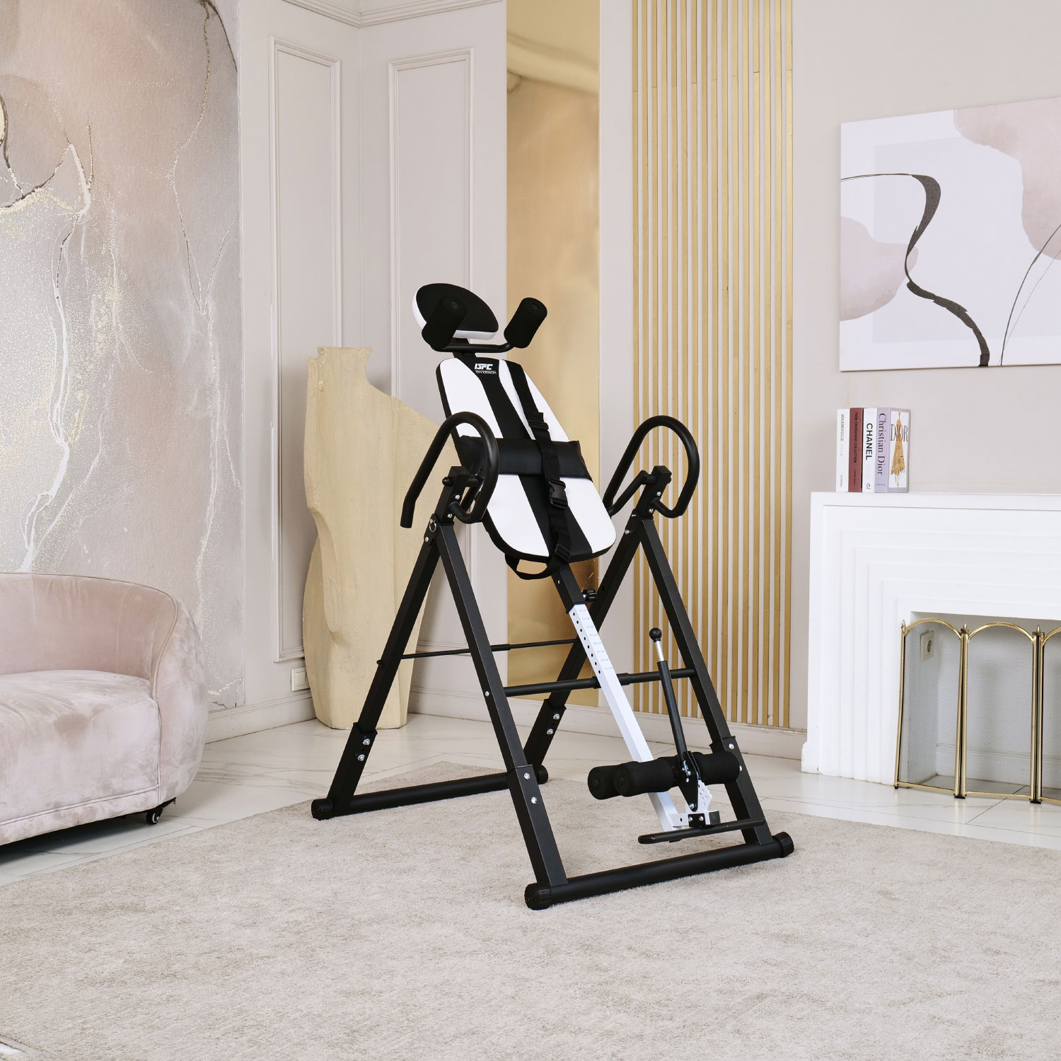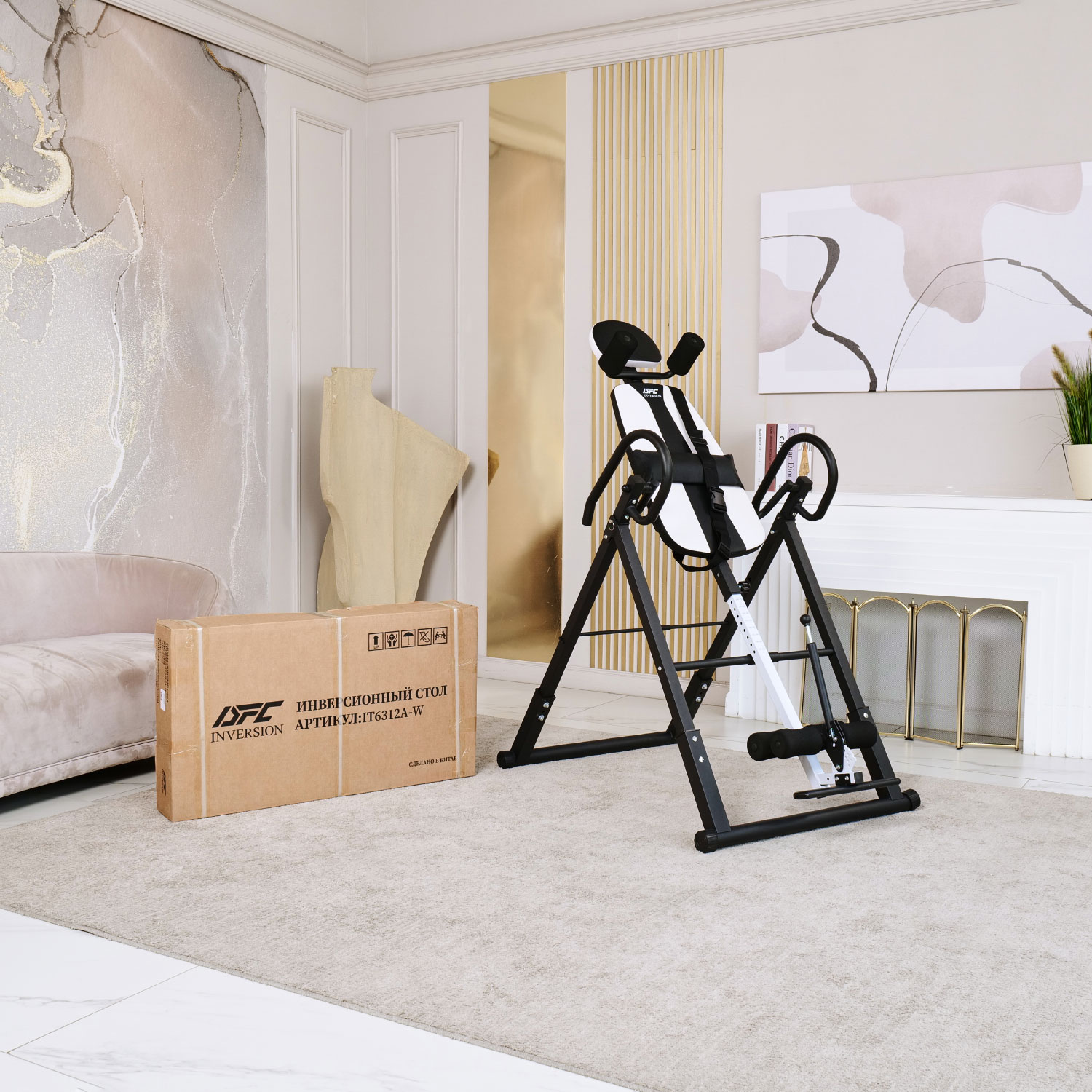 Инверсионный стол DFC IT6312A-W — это удобный и эффективный тренажёр для улучшения осанки, укрепления связок и улучшения кровообращения. Он имеет спинку белого цвета с валиками под голову и съёмную подушку под поясницу для дополнительного комфорта. Страховочный ремень входит в комплект, двойные валики для удобства использования.