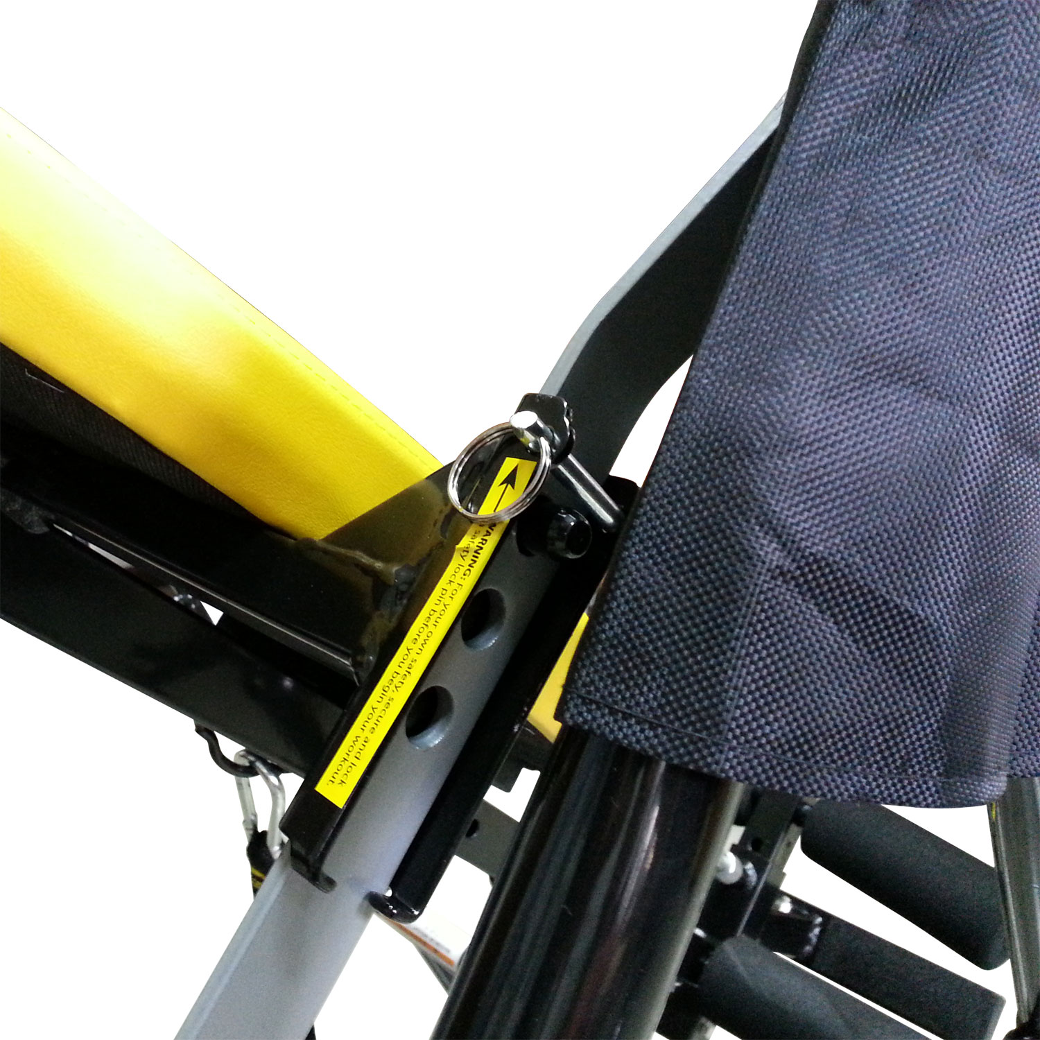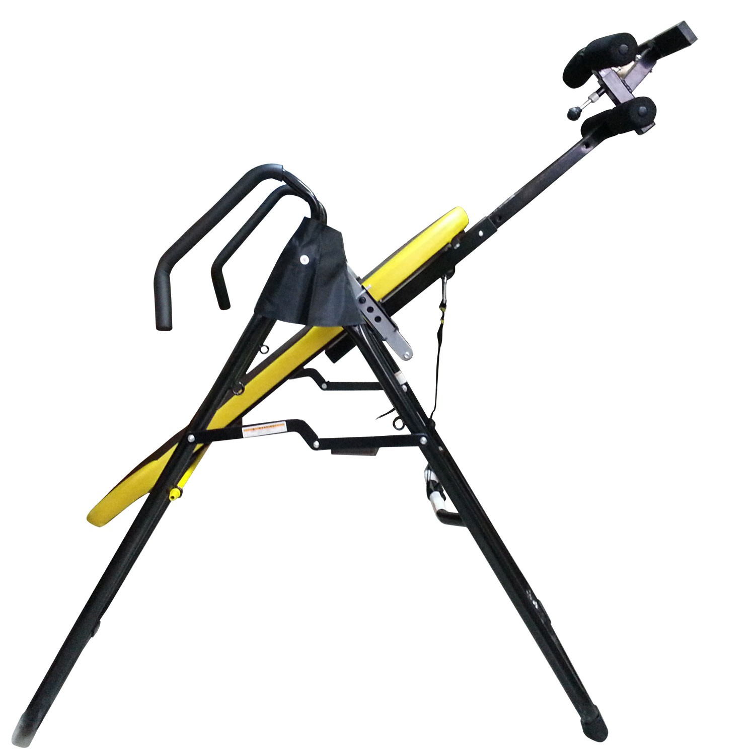 На данной модели инверсионного стола предусмотрен выбор режима инверсии (с помощью стержня): легкий (угол до 22 гр), средний (угол от 22 до 55 гр), профессиональный (от 55 гр). Размер в рабочем положении 144 х 72 х 133 см, в сложенном - 91 х 72 х 172 см.