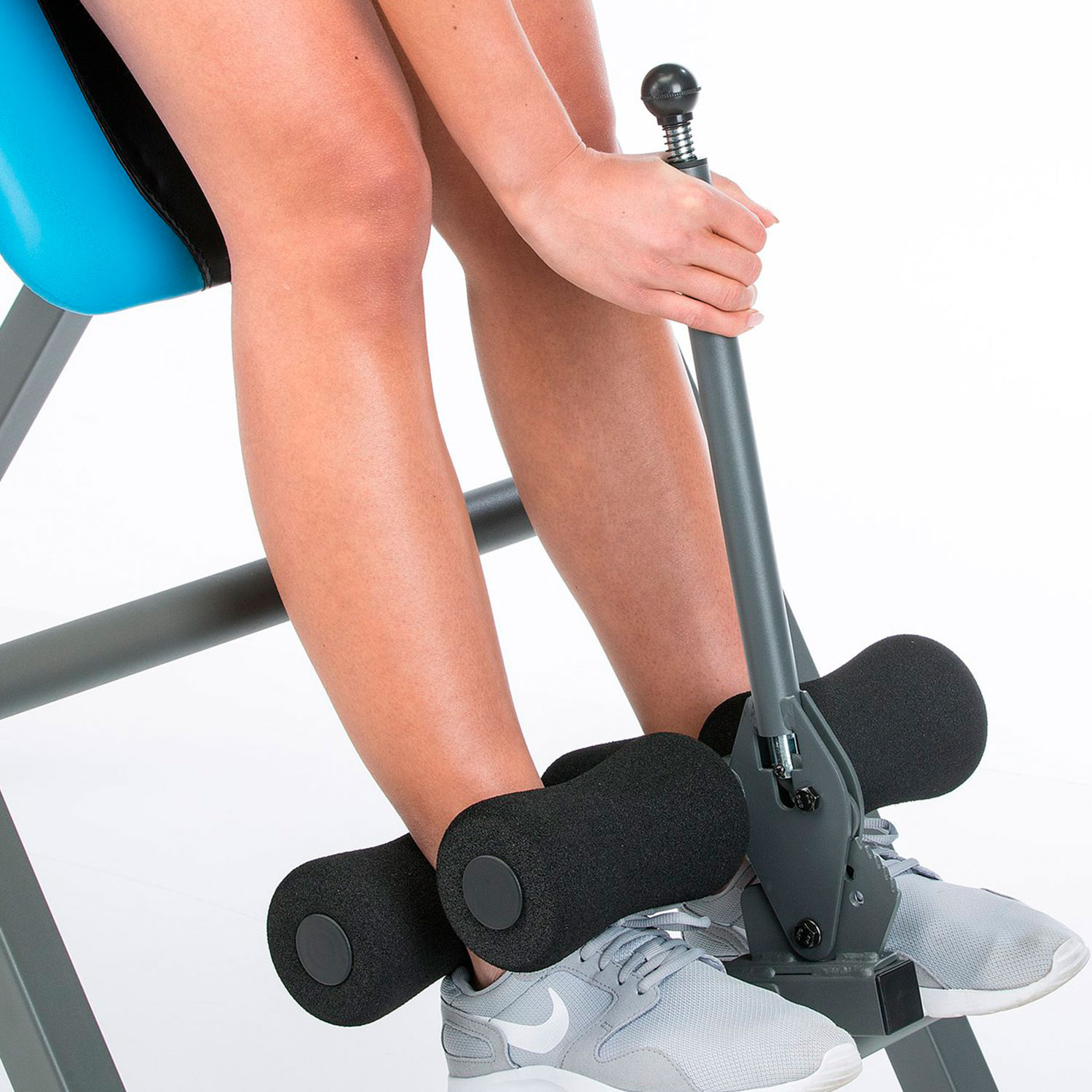 Складная модель для домашнего значения с удобной мягкой спинкой. Фиксатор для ног - 4 подушки из поролона, с длинной ручкой для регулировки положения.