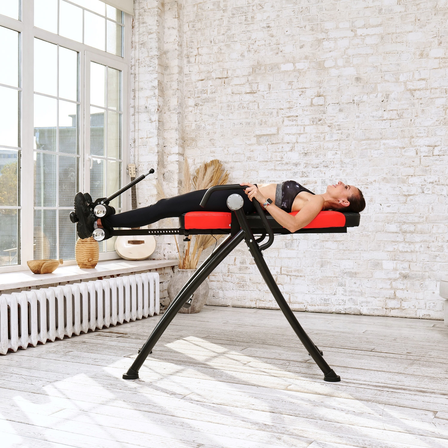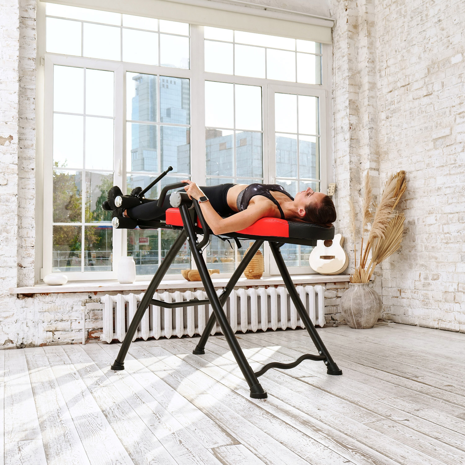 Складной инверсионный стол DFC XJ-CI-16TL идеально впишется в домашний спортзал. Съемный массажер с нагревом оказывает терапевтический эффект горячего массажа, прогревая мышцы и усиливая эффективность упражнений.