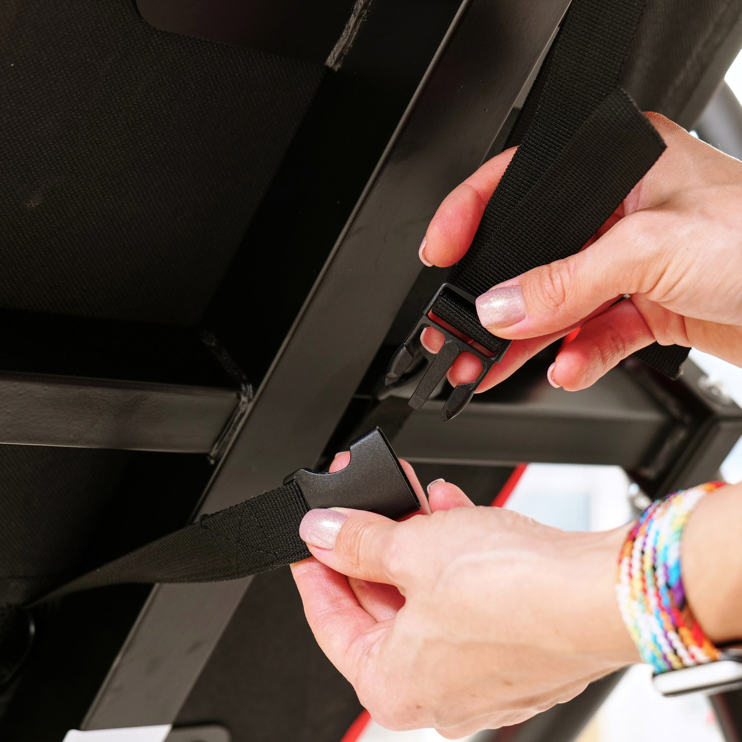 Стол выдерживает нагрузки до 200 кг – самый большой вес в данной серии. Валики и ремень безопасности надежно фиксируют пользователя во время тренировки, а защитные покрытия на элементах тренажера защищают от травм и ушибов.