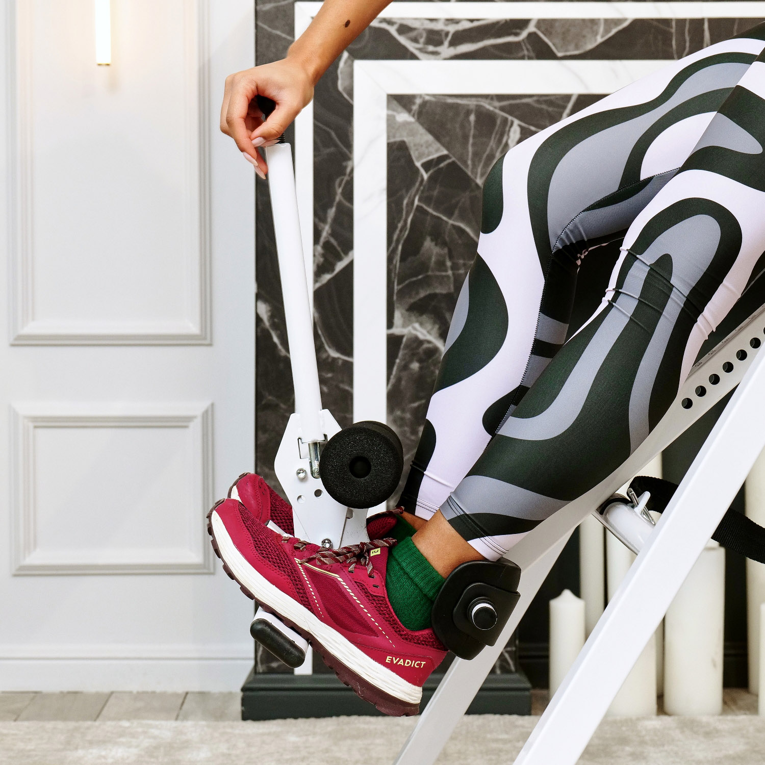 Для того, чтобы стол отклонился на необходимый вам угол, его необходимо заранее установить: наклоняете спинку до нужного угла, выбираете лишнюю длину ремня с помощью пряжки и возвращаете стол обратно в исходное положение.